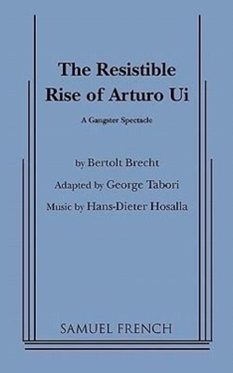 Translated by George Tabori Drama Characters: 30 male, 5 female Brecht's shudderingly accurate parallel between Hitler and his henchmen on the one hand and the old crime lords of Chicago on the other is a vigorous eye opener that was produced on Broadway with Christopher Plummer. The Cauliflower Trust in Chicago is in need of help and turns to a racketeer by the name of Arturo Ui to begin a "protection" campaign. His henchmen look astonishingly like Goebbels and Goring. Their activities include "accidental" fires and a St. Valentine's Day massacre. "A wild and grotesque sort of clown show, with everything seen through a distorting mirror...An ideal vehicle for a director who knows how to shoot the work in his staging." -The New York Post