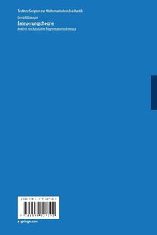 Einführung.- Grundlagen über Markov-Prozesse und Stopzeiten.- Die Hauptsätze der Erneuerungstheorie.- Die Erneuerungsgleichung.- Erstaustrittszeiten.- Explizite Ergebnisse in Spezialfällen.- Diskrete Markov-Ketten.- Markov-Sprungprozesse.- Harris-Ketten.- Markov-Erneuerungstheorie.- Regenerative Prozesse.- Das G/G/1-Bedienungssystem.- Einführung in die Fourier-Analyse.- Fourier-Analyse in der Erneuerungstheorie.- Die Feinstruktur von Random Walks.