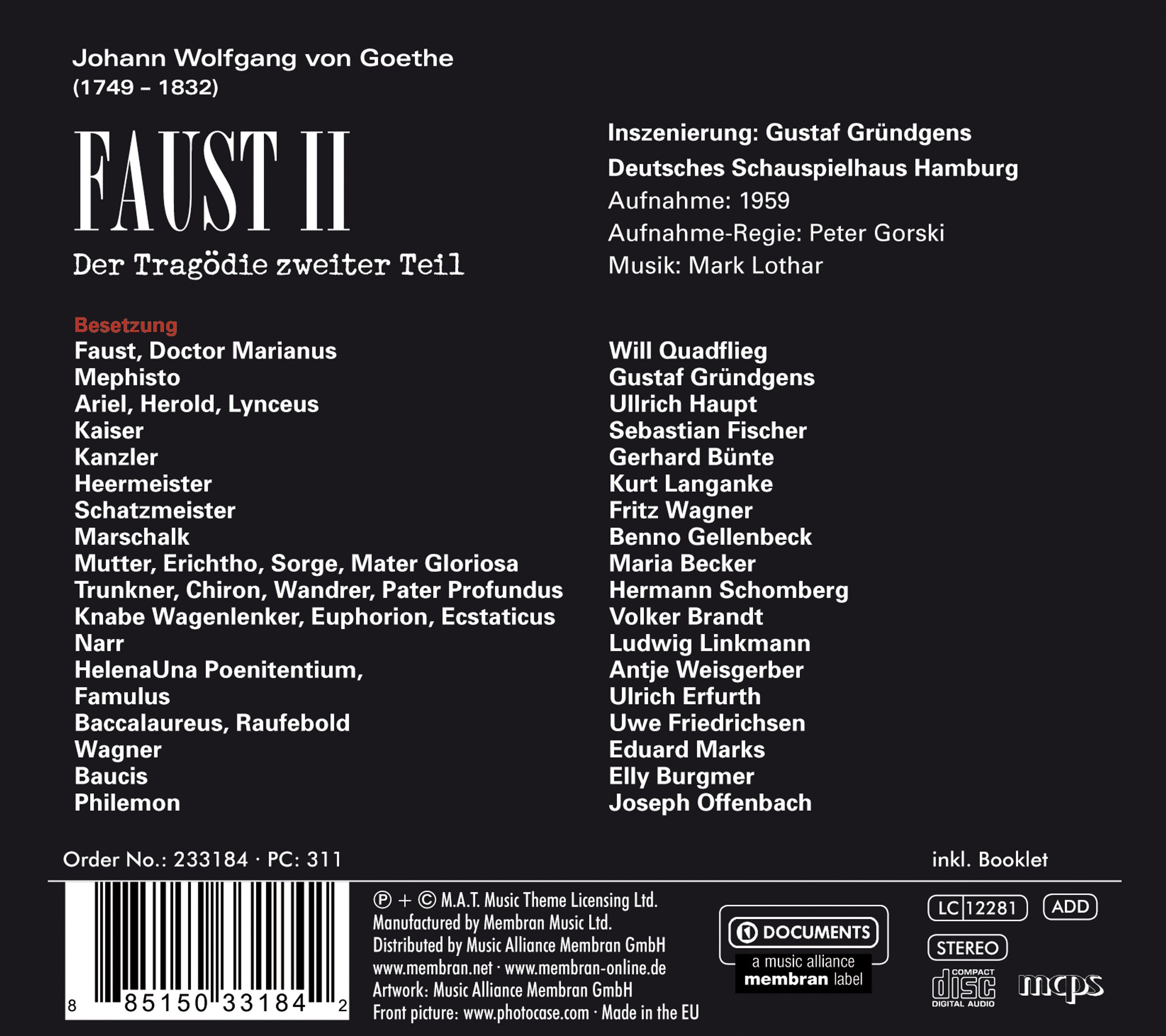 - Originaltitel: Faust II - Der Tragödie zweiter Teil