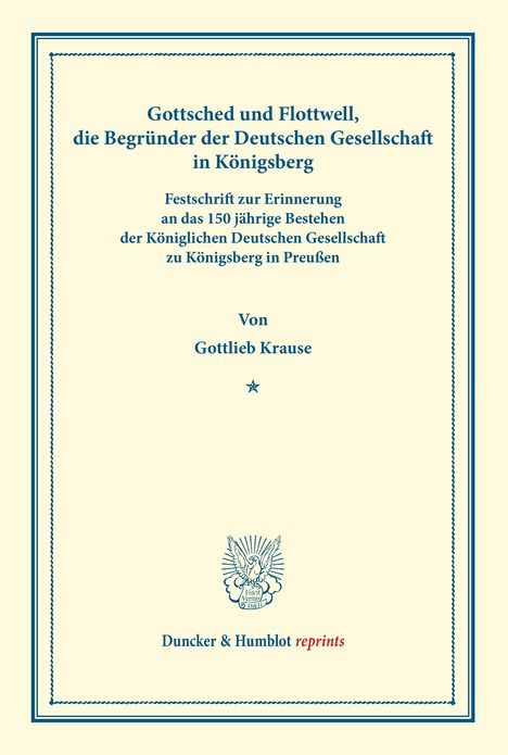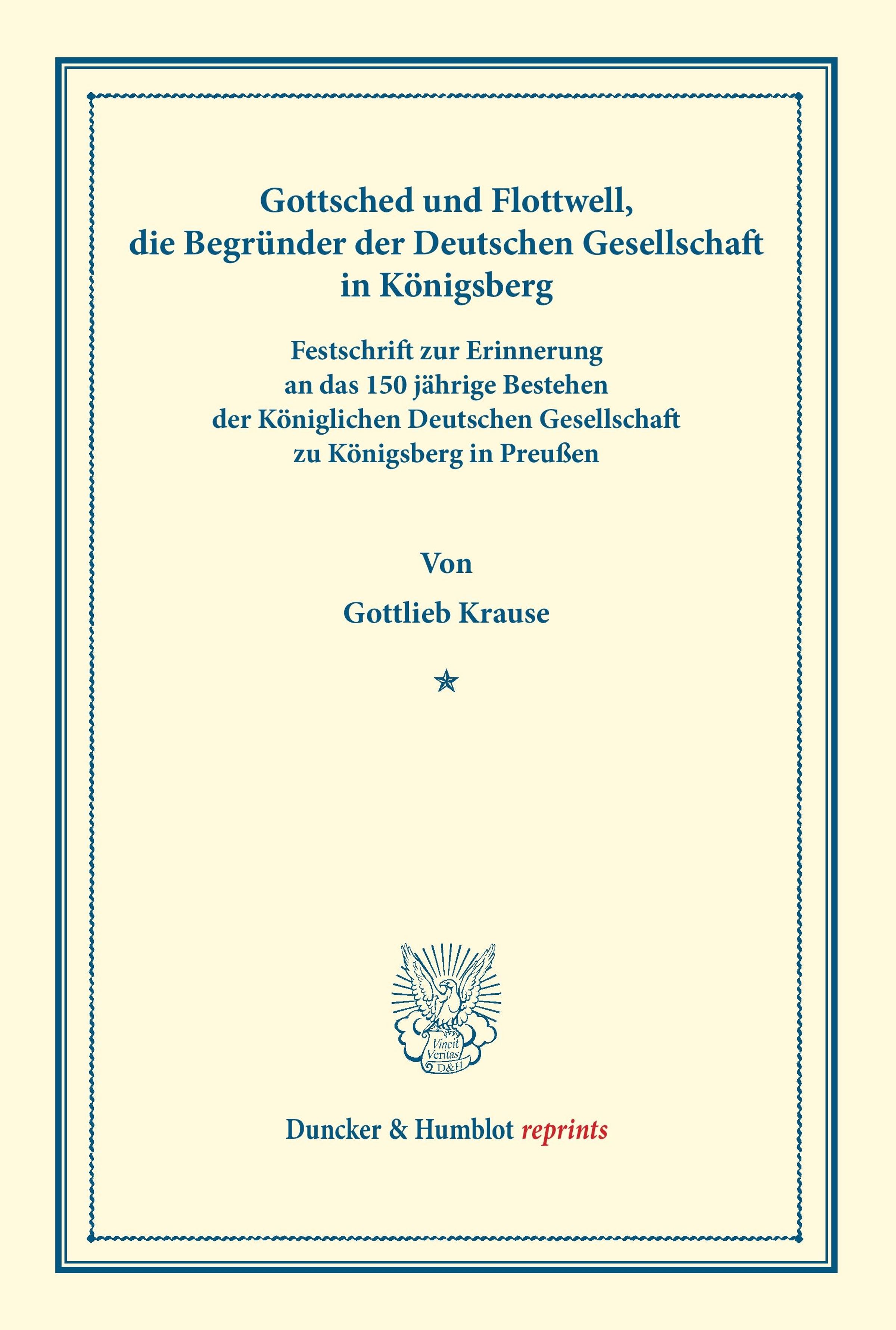 Gottsched und Flottwell, die Begründer der Deutschen Gesellschaft in Königsberg