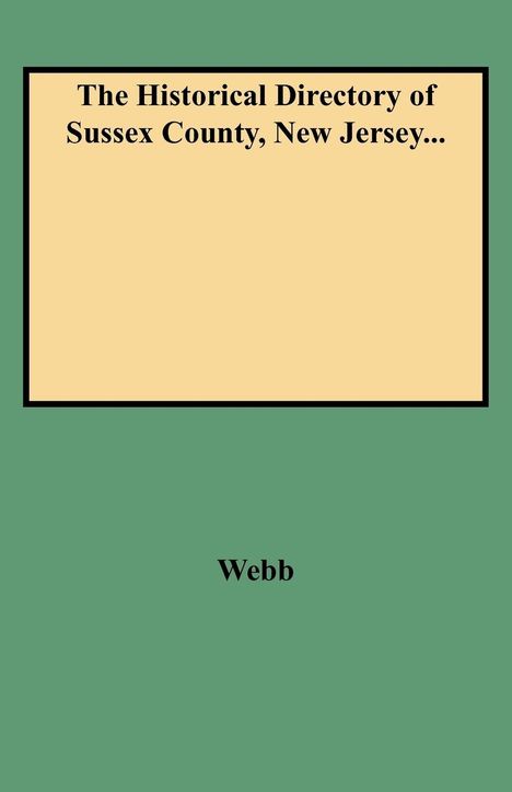 Sussex County, New Jersey, was established in 1753 from Morris County. Mr. Webb's Sussex County directory is divided into three parts. The first part, comprising fully half the book, gives a historical overview of Sussex County, complete with a discussion of Sussex's predecessor counties (Burlington, Hunterdon, and Morris), eminent Sussex pioneers, the establishment of the county courthouse and first newspaper, and mineral deposits within the county. The historical narrative then moves on to each of the county's fourteen townships from Andover through Wantage, delineating milestones, landmarks, topographical features, and famous episodes not only for the township as a whole but for each village therein as well. Part 2 constitutes the directory itself, which is arranged by township and lists the name of each freeholder, with his village, living in Sussex County at the time of the volume's original publication in 1872. In all, some 5, 000 freeholders can be found in the directory. The concluding element in the book is a business directory of Sussex County establishments, arranged by village, which identifies the proprietor or artisan by name and occupation. A good starting point for Sussex County research!