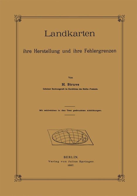 Inhalts-Uebersicht.- Hauptverrichtungen der Landkarten-Darstellung. Erdabbildungen von hochgelegenen Punkten. Vogelperspective.- Herstellung topographischer Specialkarten.- Landesvermessung (Triangulation). Messung der Grundlinien sowie der Dreieckswinkel. Heliotrop.- Fehlerquellen: Ungenauigkeit der Instrumente. Mangel eines festen Standpunktes. Lothablenkung. Lichtstrahlablenkung. Winkelmessungsfehler.- Vernier (Nonius).- Höhenmessung (Nivellement): Meereshöhe. Nivellementsfehler. Tacheometer. Barometer. Aequidistante Niveaulinien. Dufour sche Karte der Schweiz. Reliefkarten. Reliefphotogramme.- Bestimmung der Himmelsgegend (Azimut).- Feststellung der geographischen Länge (Ortszeit): durch Uhrenvergleichung, Beobachtung der Planeten, Mondbewegung. Monddistanzen.- Feststellung der geographischen Breite (Polhöhe).- Fehler bei Längen- und Breitenfeststellung.- Anfertigung des Gradnetzes (Landkarten-Projection).- Kegel-Pro jectionen.- Gradnetze von Deutschland, Deutschland nebst Oesterreich-Ungarn, Europa. Gradnetzfehler.- Cylinder-Projectionen. Cassini-Soldner sche Projection. Fehler der Cylinder- Projection.- Cylinder-Projection von Mercator (Loxodromische Projection).- Bonne sche Projection. Samson-Flamsteed sche Projection. Mol1weide s flächentreue Projection.- Perspectivische Projectionen.- Polar-Projection, Horizontal-Projection. Orthographische Projection.- Gnomonische (Centrale) Projection.- Gnomonische Karte von Europa, verglichen mit der Bonne schen Karte.- Kürzester Weg auf der Mercatorkarte.- Stereographische Projection. Externe Projection.- Gewölbte Karten. Globus.- Berechnung des kürzesten Weges (der geodätischen Linie).- Berücksichtigung der Ellipsoidgestalt der Erde bei der Berechnung.- Gradeintheilung des Ellipsoids. Entfernungs- und Winkelberechnung auf dem Erd-Ellipsoid.- Entfernungsberechnung über den Aequator hinweg.- Genauigkeit der Entfernungsberechnungen.- Gradmessungen.- Pendelmessungen.- Fehlergrenze bei überseeischen Entfernungen.- Fehlergrenze bei europäischen Entfernungen.- Wegemessung auf Karten.- Ortsmittelpunkt.- Entfernungsangaben für Landstrafsen.- Entfernungsangaben für Dampfschiffslinien.- Kürzeste Strafsenverbindung zwischen zwei Orten.- Landkartenvervielfältigung.- Landkartenschrift.- Zuverlässigkeitsgrad aufsereuropäischer Landkarten.