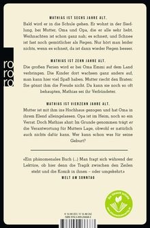 Mutter ist mit ihm ins Hochhaus gezogen und hat Oma in ihrem Elend alleingelassen. Opa ist im Heim, noch so ein Verrat. Doch Mathias ahnt: im Grunde genommen trägt er die Verantwortung für Mutters Lage, obwohl er natürlich auch nichts dafür kann. Wer kann schon was für seine Geburt?