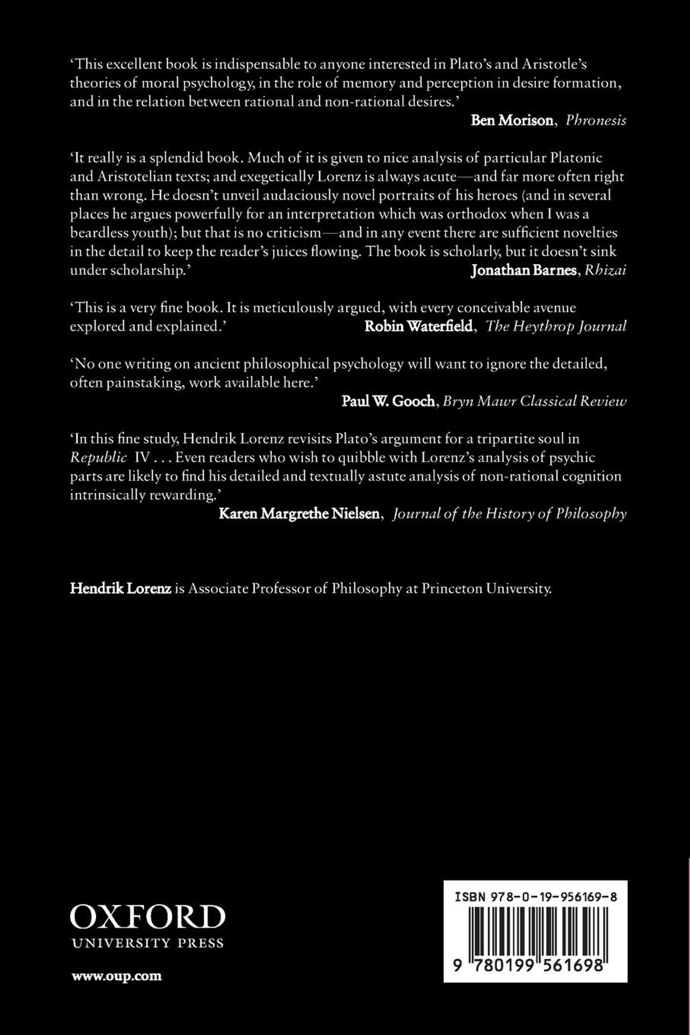 Hendrik Lorenz presents a comprehensive study of Plato's and Aristotle's conceptions of non-rational desire. They see this as something that humans share with animals, and which aims primarily at the pleasures of food, drink, and sex. Lorenz explores the cognitive resources that both philosophers make available for the explanation of such desires, and what they take rationality to add to the motivational structure of human beings. In doing so, he exposes a remarkable degree of continuity between Plato's and Aristotle's thought in this area. He also sheds fresh light, not only on both philosophers' theories of motivation, but also on how they conceive of the mind, both in itself and in relation to the body.