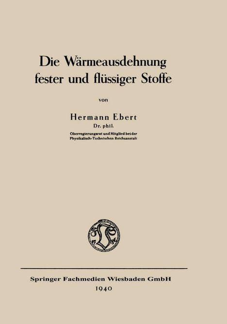 Der Artikel Hermann Ebert: Die Wärmeausdehnung fester und flüssiger Stoffe wurde in den Warenkorb gelegt.