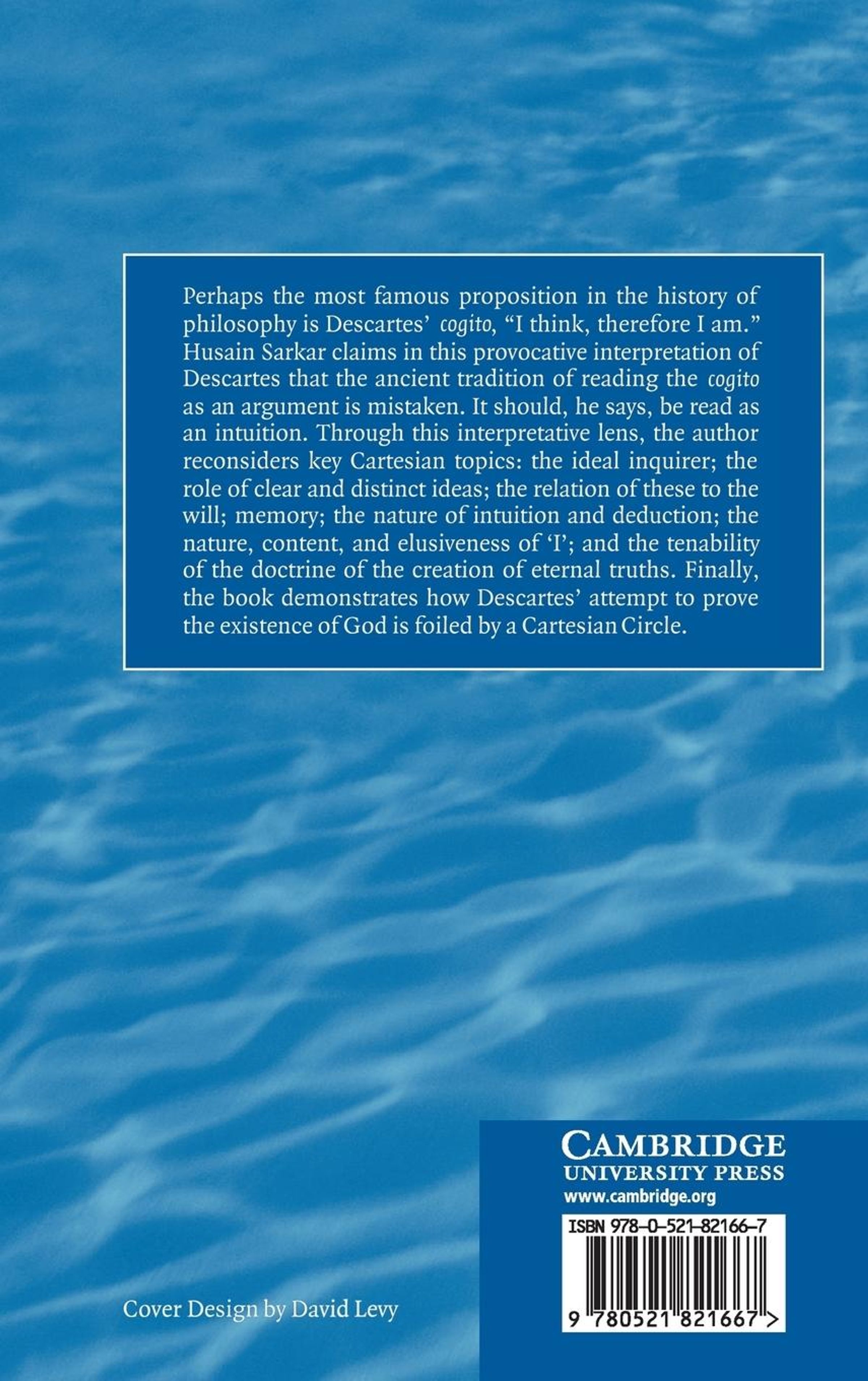 Perhaps the most famous proposition in the history of philosophy is Descartes' cogito 'I think, therefore I am'. Husain Sarkar claims in this provocative interpretation of Descartes that the ancient tradition of reading the cogito as an argument is mistaken. It should, he says, be read as an intuition. Through this interpretative lens, the author reconsiders key Cartesian topics: the ideal inquirer, the role of clear and distinct ideas, the relation of these to the will, memory, the nature of intuition and deduction, the nature, content and elusiveness of 'I', and the tenability of the doctrine of the creation of eternal truths. Finally, the book demonstrates how Descartes' attempt to prove the existence of God is foiled by a new Cartesian Circle.