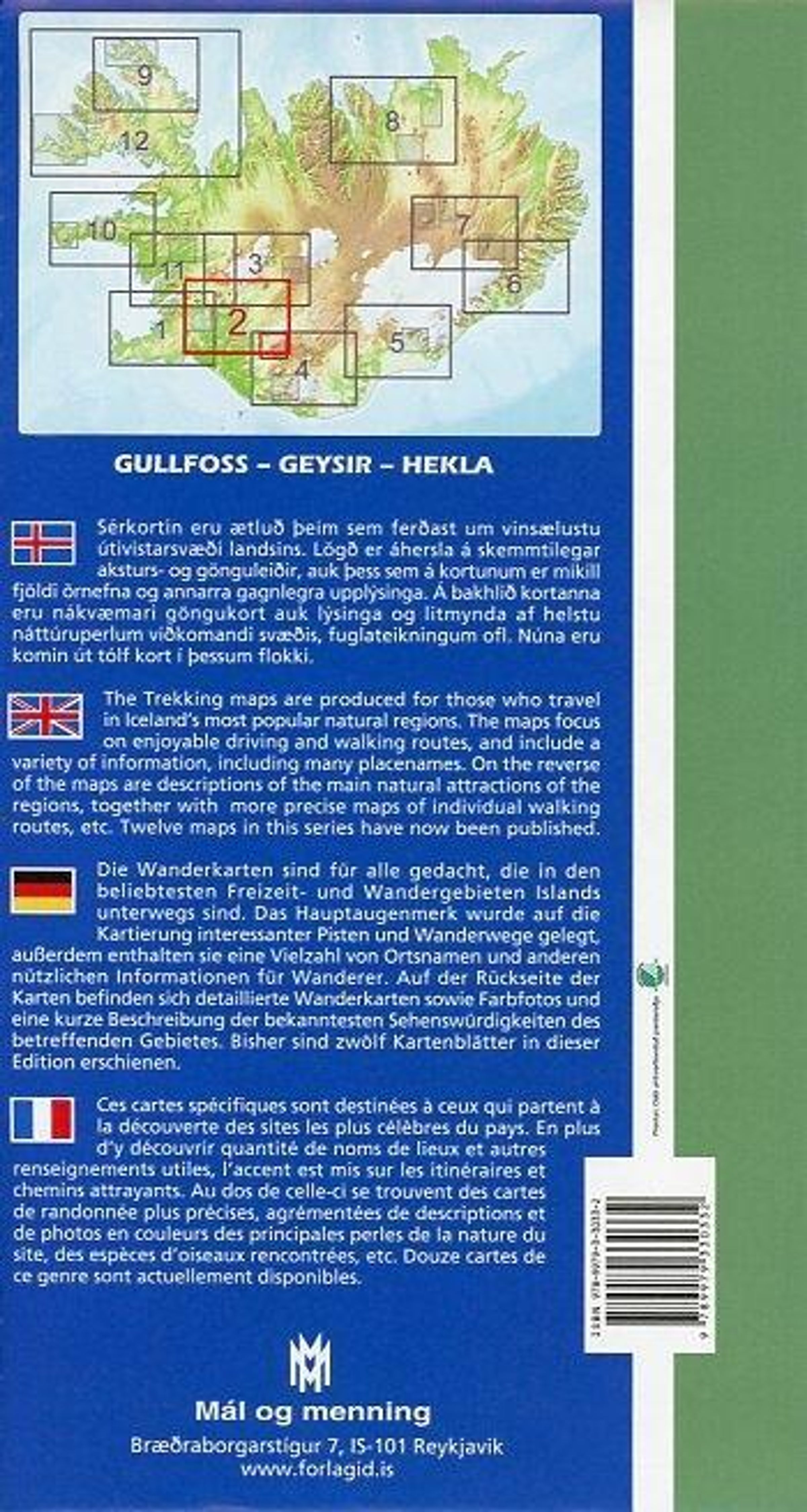 Wanderkarte Gullfoss- Geysir - Hekla 1: 100 000 inkl detaillierter Karte von Hekla 1: 50 000 auf der Rückseite