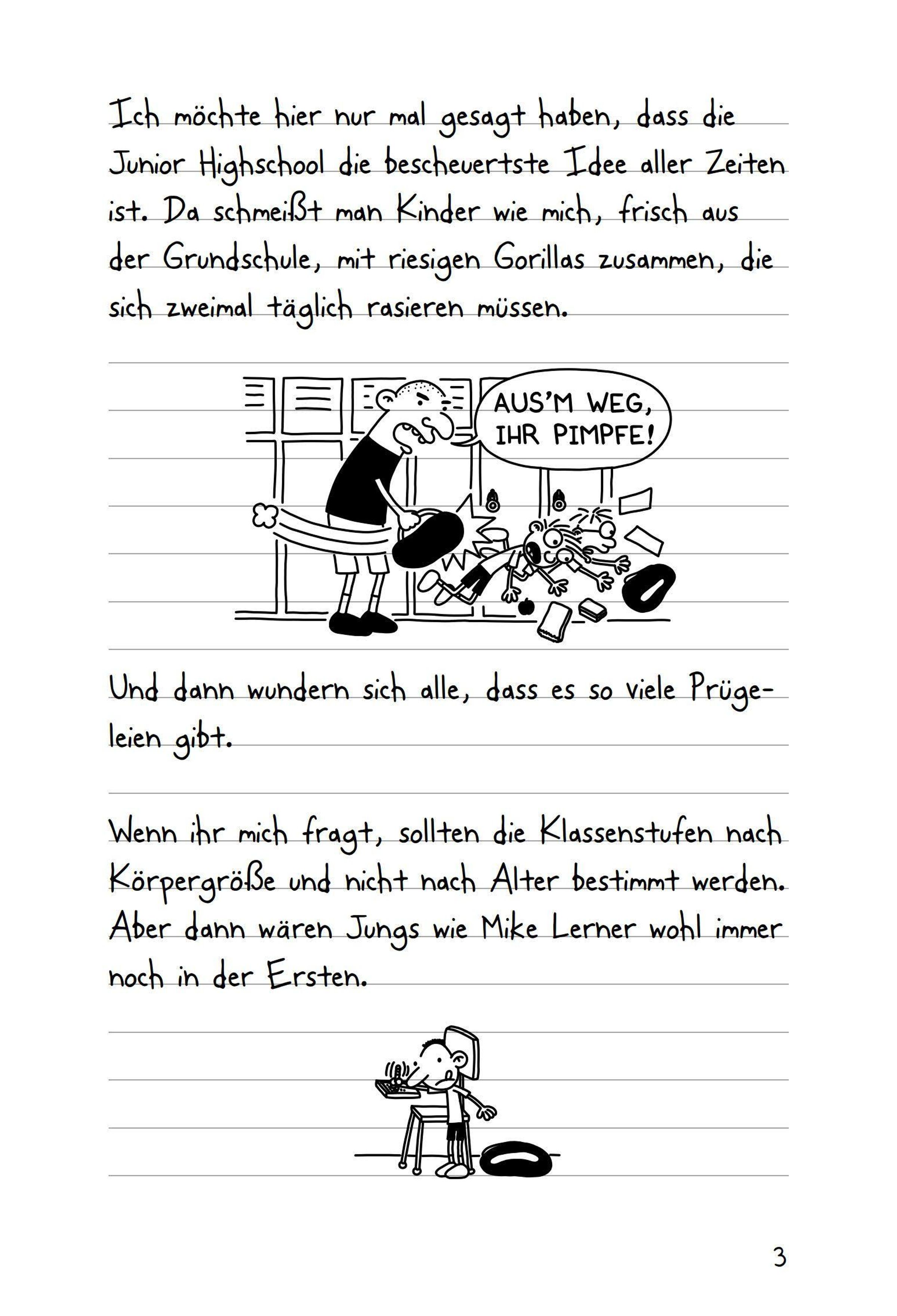 Greg Heffley hat alle Hände voll zu tun: An seiner neuen Schule merkt er schnell, dass der Schulalltag voller Fettnäpfchen steckt. Zwischen peinlichen Eltern, nervigen Brüdern, seinem tollpatschigen besten Freund Rupert und einem verbotenen Stinkekäse kämpft er ums Überleben im ganz normalen Wahnsinn. Zum Glück kann er alles in seinem Tagebuch festhalten - und zwar so, wie es wirklich war!