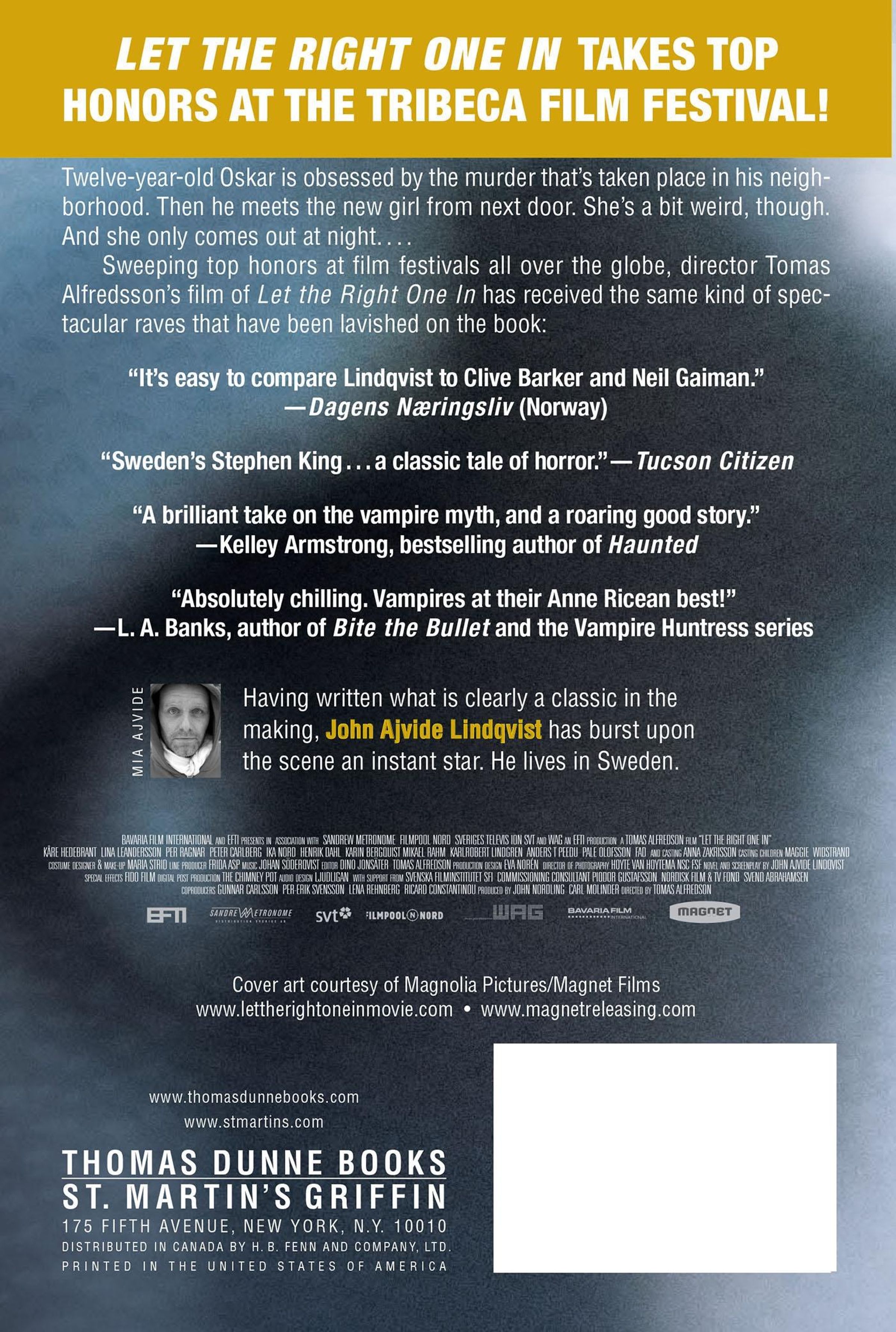 John Ajvide Lindqvist's international bestseller Let the Right One In is "a brilliant take on the vampire myth, and a roaring good story" (New York Times bestselling author Kelley Armstrong), the basis for the multi-film festival award-winning Swedish film, the U. S. adaptation Let Me In directed by Matt Reeves (The Batman), and the Showtime TV series.