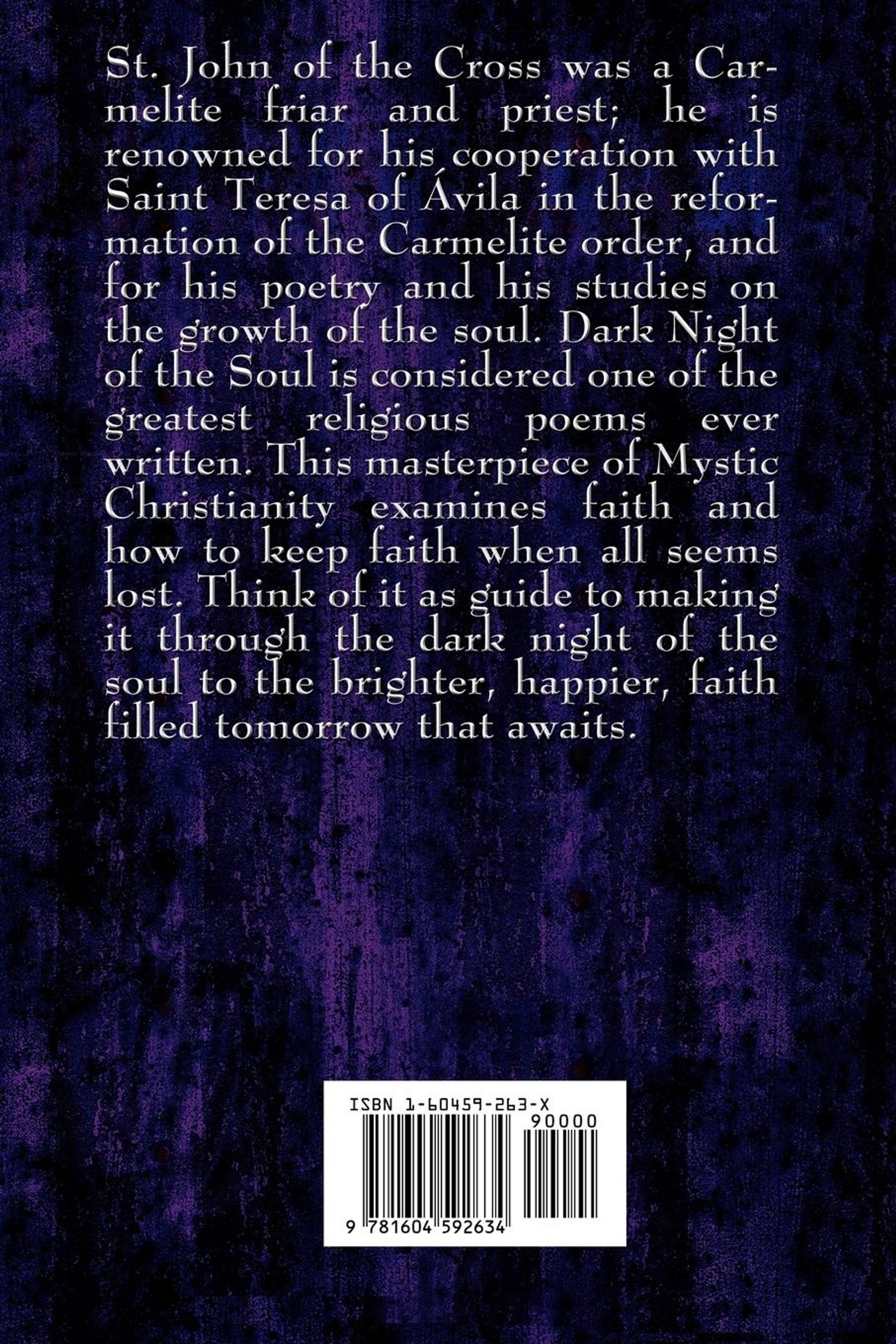 St. John of the Cross was a Carmelite friar and priest; he is renowned for his cooperation with Saint Teresa of Ávila in the reformation of the Carmelite order, and for his poetry and his studies on the growth of the soul. Dark Night of the Soul is considered one of the greatest religious poems ever written. This masterpiece of Mystic Christianity examines faith and how to keep faith when all seems lost. Think of it as guide to making it through the dark night of the soul to the brighter, happier, faith filled tomorrow that awaits.