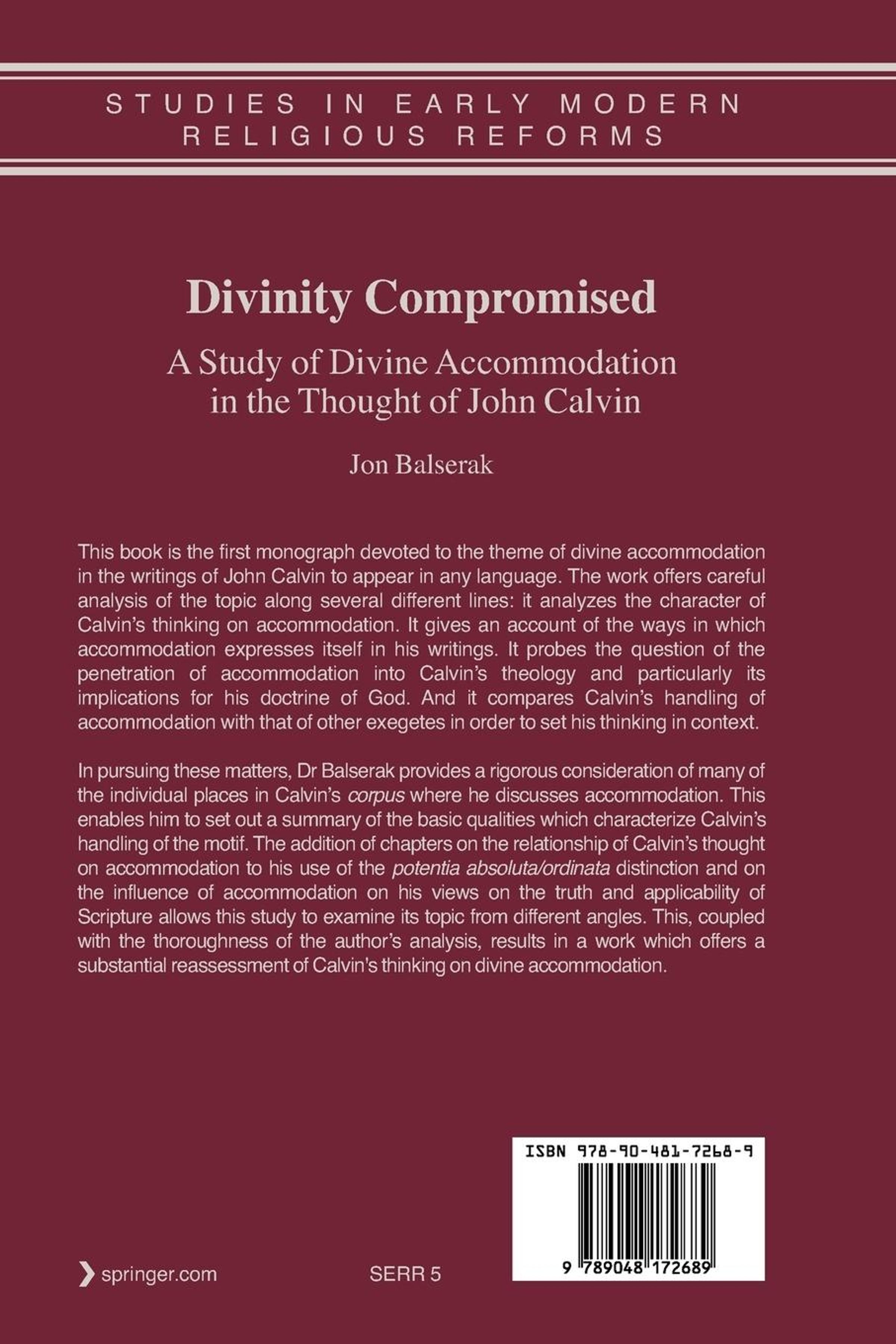 Divine accommodation in John Calvin¿s thought has yet to receive the attention it deserves. To date it has not been the subject of a monograph-length treatment in any language (this study is the first) and the number of journal articles and book chapters devoted solely to it is small. The present work will, it is hoped, help to fill this lacuna in research on the topic, but additional research is undoubtedly still needed. Its title probably deserves a comment. The use of the word compromised is intended to raise the question of the extent of accommodation¿s penetration into Calvin¿s doctrine of God. It aims to suggest the idea that Calvin¿s thinking on accommodation might possess qualities which push against traditional thinking on the divine attributes. The idea was first suggested by E. David Willis. The present study will aim to expand upon it. This monograph owes much to the efforts of Emeritus Professor of Patristic and Reformed Christianity, David F. Wright, who, as supervisor, colleague and friend, has offered assistance to me on innumerable occasions and has also demonstrated a level of scholarly excellence in his own work that has been enormously instructive and encouraging. Thanks are also due to a host of others. Thanks must be expressed to Professor Tony Lane, who offered very helpful criticisms of two earlier versions of this work and whose kindness has not gone unnoticed or unappreciated.