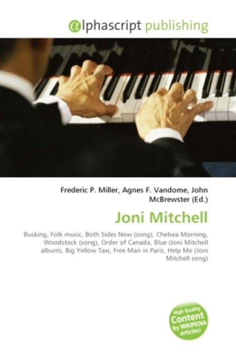 Please note that the content of this book primarily consists of articles available from Wikipedia or other free sources online. Joni Mitchell, CC (born Roberta Joan Anderson; November 7, 1943) is a Canadian musician, songwriter, and painter. Mitchell began singing in small nightclubs in her native Western Canada and then busking on the streets of Toronto. In the mid-1960s she left for New York City and its rich folk music scene, recording her debut album in 1968 and achieving fame first as a songwriter ("Urge for Going", "Chelsea Morning", "Both Sides Now", "Woodstock") and then as a singer in her own right. Finally settling in Southern California, Mitchell played a key part in the folk rock movement then sweeping the musical landscape. Blue, her starkly personal 1971 album, is regarded as one of the strongest and most influential records of the time. Mitchell also had pop hits such as "Big Yellow Taxi", "Free Man in Paris", and "Help Me", the last two from 1974's best-selling Court and Spark. Mitchell's soprano vocals, distinctive harmonic guitar style, and piano arrangements all grew more complex through the 1970s as she was deeply influenced by jazz, melding it with pop, folk and rock on experimental albums like 1976's Hejira.
