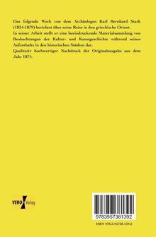 Das folgende Werk von dem Archäologen Karl Bernhard Stark (1824-1879) berichtet über seine Reise in den griechische Orient. In seiner Arbeit stellt er eine beeindruckende Materialsammlung von Beobachtungen der Kultur- und Kunstgeschichte während seines Aufenthalts in den historischen Städten dar. Qualitativ hochwertiger Nachdruck der Originalausgabe aus dem Jahr 1874.
