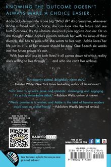 Addison Coleman's life is one big "What if?" As a Searcher, whenever Addie is faced with a choice, she can look into the future and see both outcomes. It's the ultimate insurance plan against disaster. Or so she thought. When Addie's parents ambush her with the news of their divorce, she has to pick who she wants to live with. Addie loves her life just as it is, so her answer should be easy. One Search six weeks into the future proves it's not.