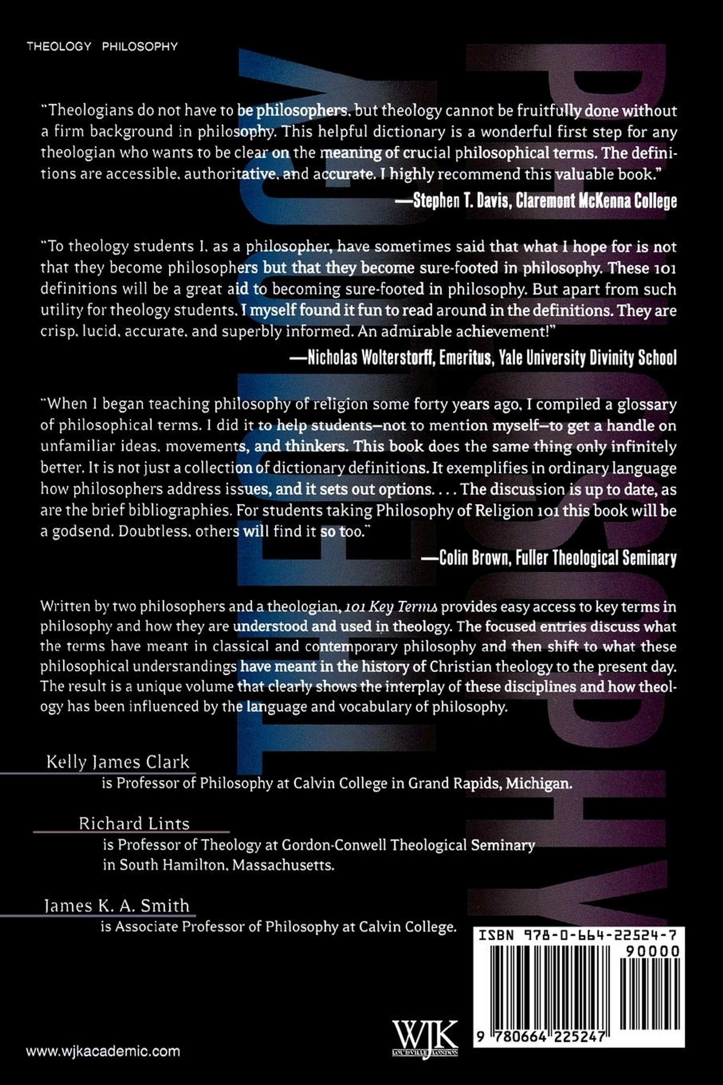 WRITTEN BY TWO PHILOSOPHES AND A THEOLOGIAN, 101 KEY TERMS PROVIDE EASY ACCESS TO KEY TERMS IN PHILOSOPHY AND HOW THEY ARE UNDERSTOOD AND USED IN THEOLOGY.