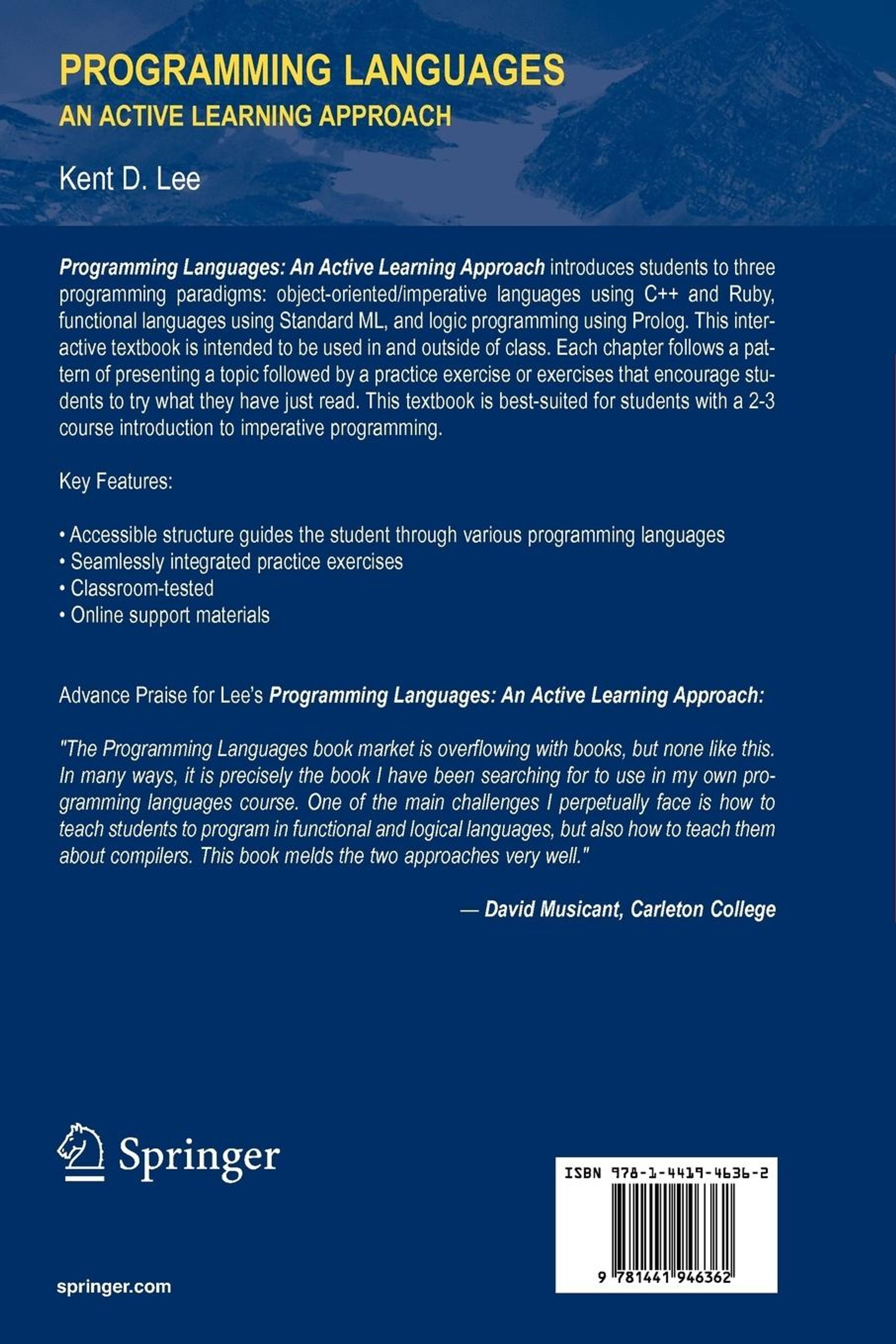 Key Features: (1) Accessible structure guides the student through various programming languages. (2) Seamlessly integrated practice exercises. (3) Classroom-tested. (4) Online support materials.