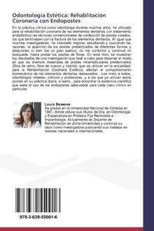 En la práctica clínica como odontóloga durante muchos años, he utilizado para la rehabilitación coronaria de los elementos dentarios con tratamiento endodóntico las técnicas convencionales de confección de postes colados, los que terminaban con la fractura de los elementos dentarios. Al igual que muchos investigadores, he intentado mejorar, estudiando y buscando las razones; la aparición de los postes prefabricados de diferentes formas y aleaciones si bien fue un gran avance, no me conformó y continué mi búsqueda, hasta probar los postes de fibras. En este libro, se muestran los resultados de una investigación que llevé a cabo para observar el modo en que los diversos materiales de postes intrarradiculares prefabricados (fibra de vidrio, fibra de cuarzo y titanio), que se utilizan en la actualidad, para la Rehabilitación Coronaria Estética, afectan el comportamiento biomecánico de los elementos dentarios restaurados . Los invito a todos, odontólogos nóbeles, clínicos y protesistas, y a los que ya utilizan estos postes en su práctica diaria, a leerlo , para encontrar la evidencia científica que avale el uso de los endopostes adecuados para cada caso clínico en particular.