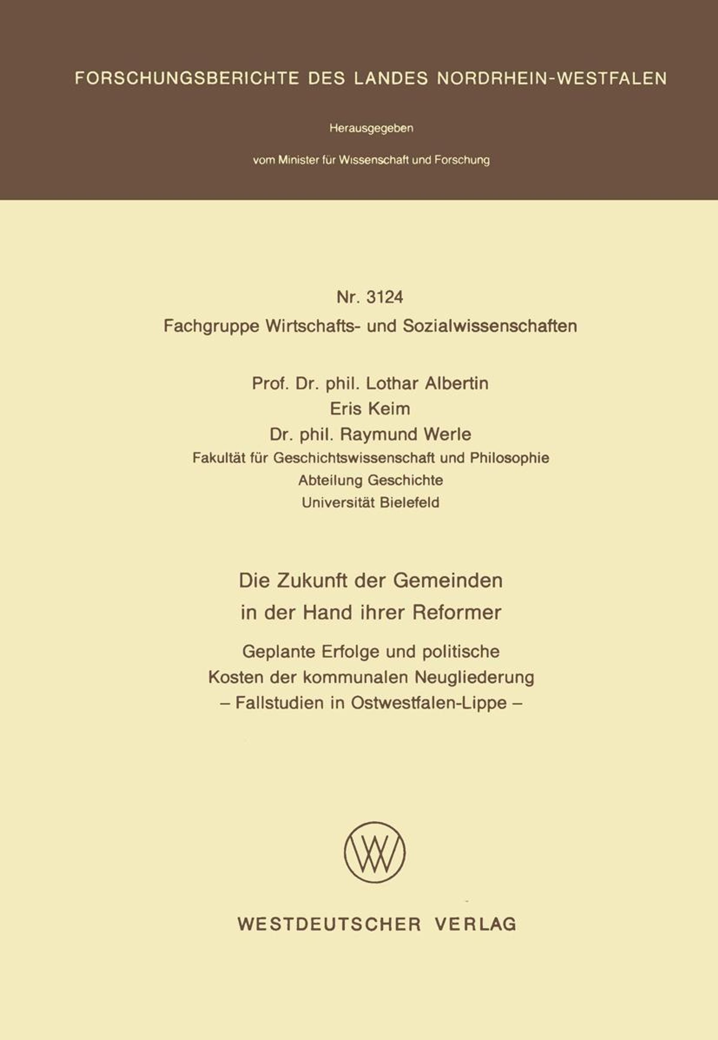 Einleitung: Thematik und Disposition.- 1. Neugliederung als Historisches Phänomen.- 1.1. Städtische Eingemeindungspolitik bis 1918: Rechtliche Voraussetzungen, Interessenlagen und Argumente.- 1.2. Kommunale Selbstverwaltung zwischen Reform und Stagnation in der Weimarer Republik.- 1.2.1. Neugliederungsregelungen Groß-Berlin und Ruhrsiedlungsverband.- 1.2.2. Neugliederung im rheinisch-westfälischen Industriegebiet: Ziele, Kräfte und Verfahrensweisen.- 1.2.3. Das finanzpolitische Dilemma der Kommunen.- 1.2.4. Die kommunale Selbstverwaltung in der verfassungspolitischen Diskussion.- 1.3. Gleichschaltungstendenzen unter dem Nationalsozialismus.- 1.4. Wiederaufbau kommunaler Verwaltungen nach dem Zweiten Weltkrieg.- 1.4.1. Erste Neugliederungsimpulse: Wirtschaftlicher Wiederaufbau und städtischer Flächenbedarf (Das Beispiel der Großstadt Bielefeld).- 1.4.2. Die Reformfrage bei öffentlicher Armut: Die Diskussion in Lippe nach dem Zweiten Weltkrieg (Das Beispiel der kleinen Gemeinden).- 1.4.3. Die Überforderung der kleinen Gemeinden.- 1.5. Die Bedeutung der historischen Dimension in der Reformdiskussion.- 2. Das Forschungsprojekt.- 2.1. Räumliche und personelle Bezugsgrößen.- 2.2. Profil der Befragten.- 3. Verlauf der Reform.- 3.1. Reformanstöße und die Neugliederungsprogramme in Nordrhein-Westfalen.- 3.2. Der Prozeß in Lippe.- 3.2.1. Leistungsschwache Gemeinden ohne Kraft zur Reform.- 3.2.2. Das Meinungsspektrum während der Reform.- 3.2.3. Das kommunalpolitische Beispiel eines Kurortes: Bad Meinberg.- 3.2.4. Der Einfluß der Tradition auf die Kreislösung.- 3.3. Der Neugliederungsprozeß im Bielefelder Raum.- 3.3.1. Großstädtische Initiativen.- 3.3.2. Probleme innerparteilicher Konsensbildung.- 3.3.3. Bezirksverfassung als Einigungsofferte.- 3.4. Der Prozeß im Paderborner Raum.- 3.4.1. Paderborns Stadtentwicklung und Raumbedarf.- 3.4.2. Kriterien eines Großkreismodells im Meinungsstreit.- 3.4.3. Sonderprobleme: Besitzstandsinteressen und soziale Identitätsfragen.- 4. Grundprobleme der Reform.- 4.1. Das Selbstverwaltungsproblem.- 4.1.1. Ideengeschichtliche Positionen.- 4.1.2. Definitorische Ansätze in der Gegenwart.- 4.1.3. Der Einfluß der Gebietsreform auf das Selbstverwaltungsverständnis der kommunalen Elite.- 4.1.4. Empirische Ergebnisse.- 4.2. Probleme politischer Beteiligung.- 4.3. Probleme der Teilhabe in sozialstaatlicher Sicht.- 5. Politische Teilnahme in der Gebietsreform.- 5.1.1. Der Einfluß der staatlichen Gewalt.- 5.1.2. Kommunen in der Anhörung.- 5.2.2. Informationspolitik gegenüber den Betroffenen.- 6. Was Sollte Erreicht Werden?.- 6.1. Zur Qualität von Zielkonzepten.- 6.2. Genesis der Zielvorstellungen.- 6.3. Empirische Ergebnisse: Bewertung von Zielen.- 6.3.1. Zieldimensionen.- 6.3.2. Zielsetzung und Zielerreichung: Globaler Soll-Ist-Vergleich.- 6.3.3. Differenzierungen in der Zielbewertung.- 6.3.3.1. Ziele und ursprüngliche Haltung zur Gebietsreform.- 6.3.3.2. Ziele und Funktion der Befragten.- 6.3.3.3. Ziele und Parteizugehörigkeit.- 6.3.3.4. Ziele und Siedlungszone.- 6.3.3.5. Ziele und Kreiszugehörigkeit sowie Neugliederungsperiode.- 7. Was Ist Erreicht Worden?.- 7.1. Probleme der Erfolgsbestimmung und Erfolgskontrolle.- 7.2. Globaler Soll-Ist-Vergleich und Zeitperspektive.- 7.3. Differenzierungen in der Bewertung des Erreichten.- 7.3.1. Kreiszugehörigkeit.- 7.3.2. Siedlungszone.- 7.3.3. Funktion.- 7.3.4. Parteizugehörigkeit.- 7.4. Leistungsverbesserung der kommunalen Selbstverwaltung.- 7.4.1. Aufgabenbereiche.- 7.4.2. Vermittlung von Leistungen und Publikumsverkehr.- 7.5. Auswirkungen auf die Räte und ihr Verhältnis zur Verwaltung.- 7.6. Auswirkungen auf die politischen Parteien.- 7.7. Auswirkungen auf das Verhältnis zwischen Kreis und Gemeinde.- 8 Folgeprobleme.- 8.1. Dauerhaftigkeit der Neuordnung.- 8.2. Unterbliebene Reformen.- 8.2.1. Nachhaltige Versäumnisse: Bürgerbeteiligung in der Kommunalpolitik.- 8.2.2. Flüchtige Pläne: Führungsstruktur.- 8.3. Funktionalreform.- 8