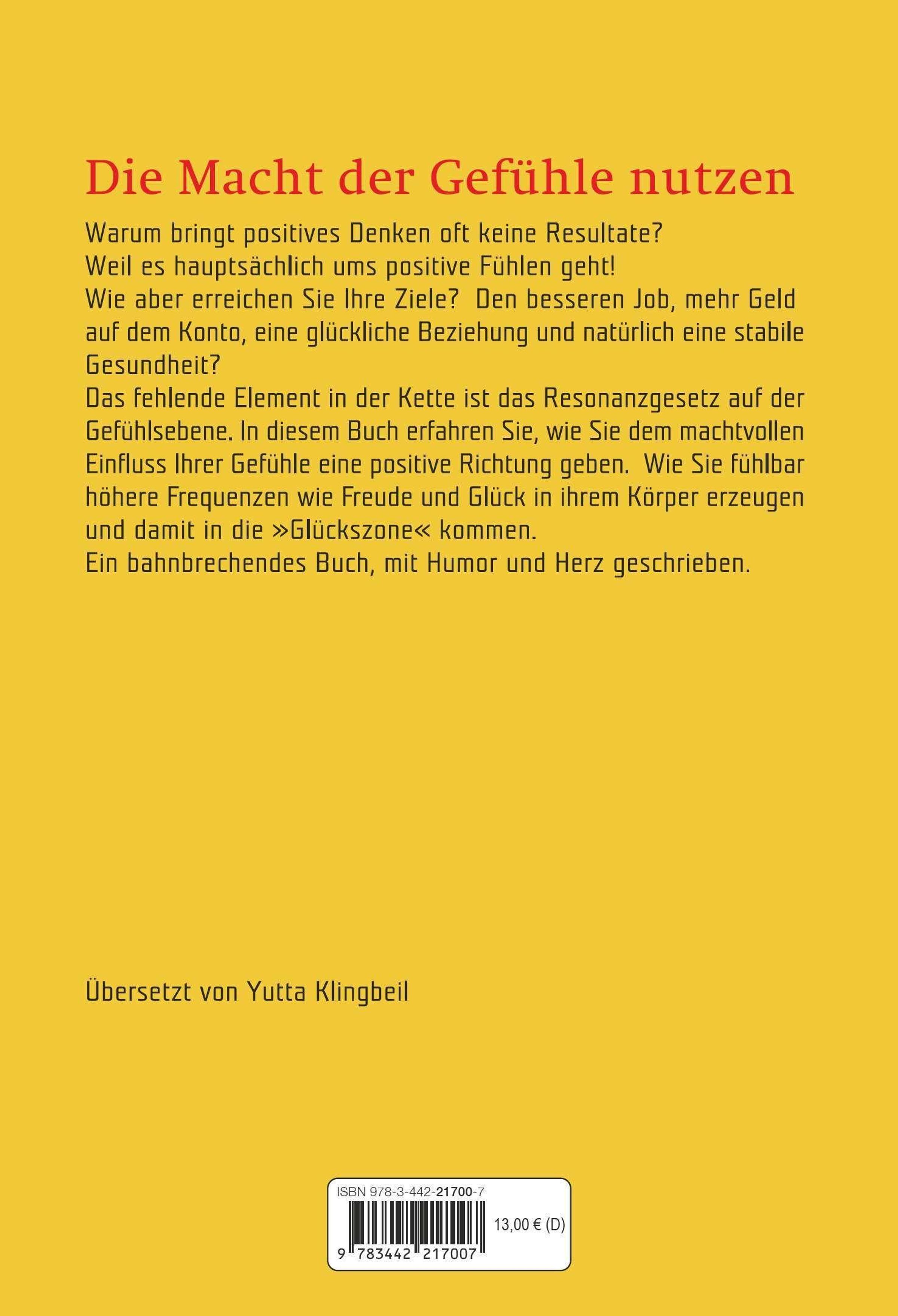 Warum erreichen manche Menschen trotz aller Affirmationen und positiven Denkens oft nicht die gewünschten Resultate? Den besseren Job, mehr Geld auf dem Konto, eine glückliche Beziehung und natürlich eine stabile Gesundheit? Das fehlende Element in der Kette ist die sanfte, aber eindringliche Kraft der eigenen Gefühle. Gefühle sind die heimlichen Herrscher im Leben. Lynn Grabhorn verrät ihren Lesern, wie sie mit einem 30-Tage-Programm die Gefühle zum machtvollen Verbündeten machen.