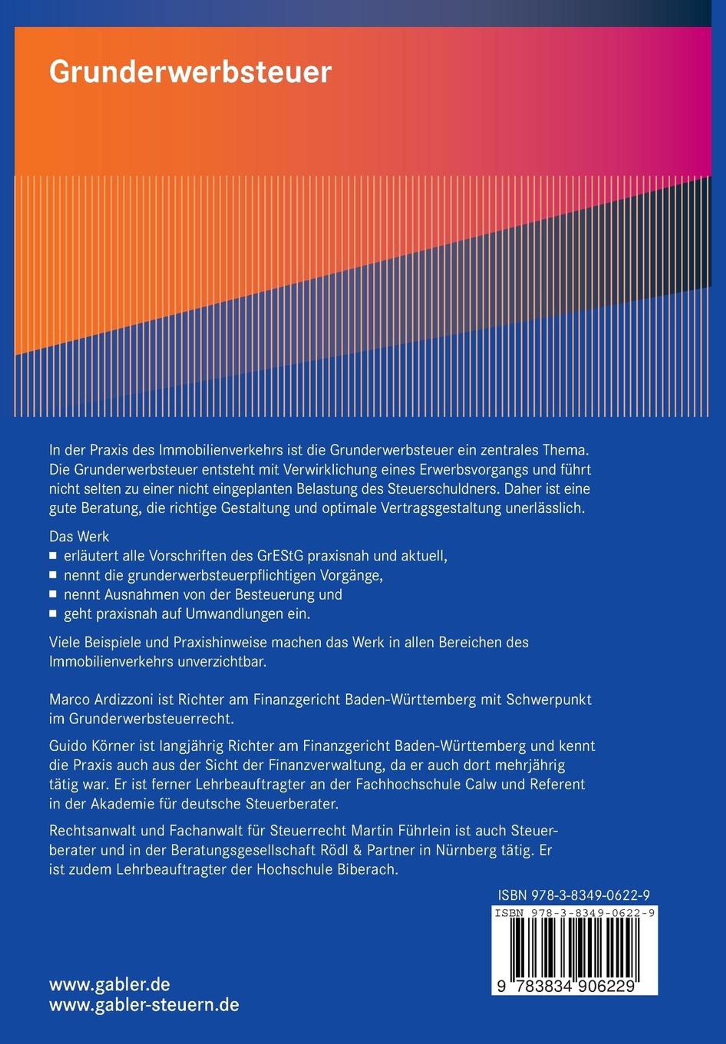 Erwerbsvorgänge.- Begriff des Grundstücks.- Steuerbefreiungen.- Bemessungsgrundlage.- Steuerberechnung.- Steuerschuld.- Nichtfestsetzung der Steuer, Aufhebung oder Änderung der Steuerfestsetzung (