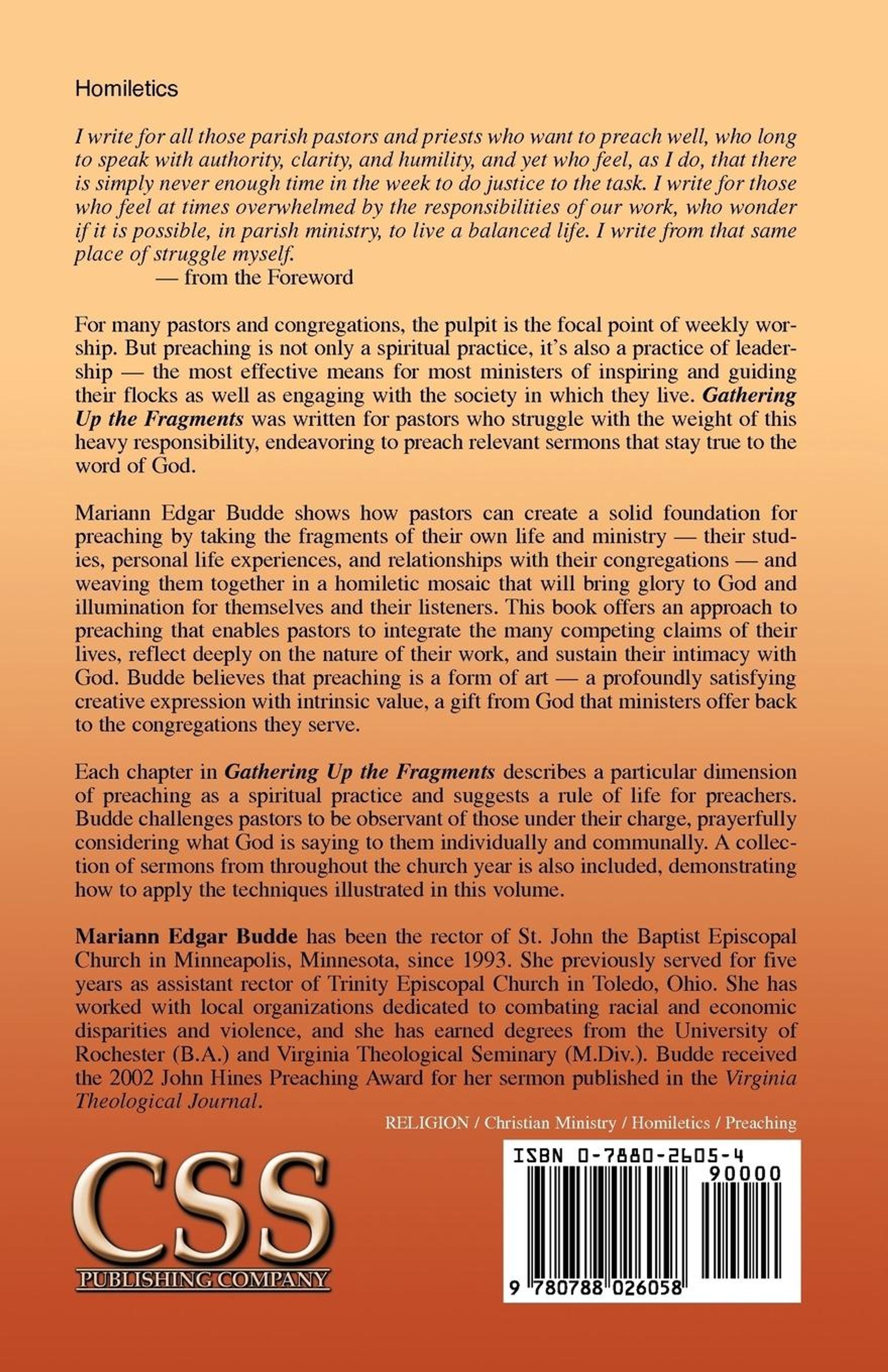 Each chapter in Gathering Up the Fragments describes a particular dimension of preaching as a spiritual practice and suggests a rule of life for preachers. Budde challenges pastors to be observant of those under their charge, prayerfully considering what God is saying to them individually and communally. A collection of sermons from throughout the church year is also included, demonstrating how to apply the techniques illustrated in this volume.