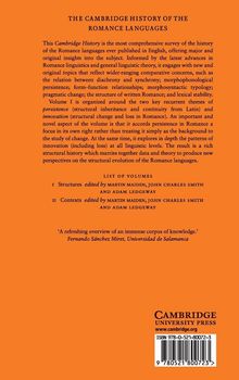 This Cambridge History is the most comprehensive survey of the history of the Romance languages ever published in English. It engages with new and original topics that reflect wider-ranging comparative concerns, such as the relation between diachrony and synchrony, morphosyntactic typology, pragmatic change, the structure of written Romance, and lexical stability. Volume 1 is organized around the two key recurrent themes of persistence (structural inheritance and continuity from Latin) and innovation (structural change and loss in Romance). An important and novel aspect of the volume is that it accords persistence in Romance a focus in its own right rather than treating it simply as the background to the study of change. In addition, it explores the patterns of innovation (including loss) at all linguistic levels. The result is a rich structural history which marries together data and theory to produce new perspectives on the structural evolution of the Romance languages.