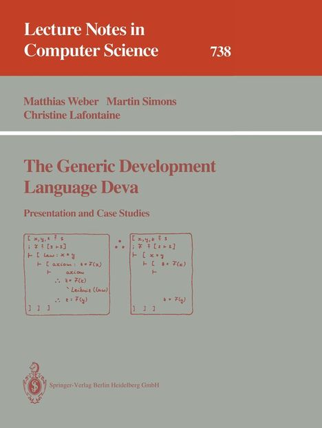 This book summarizes work done by the authors under the Esprit Tool Use project (1985-1990), at GMD in Karlsruhe and at Berlin University of Technology. It provides a comprehensive description of the generic development language Deva designed by the authors. Much of the research reported in this monograph is inspired by the work of Michel Sintzoff on formal program development; he contributed an enlightening Foreword. Deva is essentially a typed functional language with certain deduction rules. The difference with ordinary languages is, of course, the application domain: the types serve here to express propositions such as specifications or programs, rather than just data classes. Its practical applicability was tested on several non-trivial case studies. The whole book is written using the DVWEB system, a WEB for Deva, beeing implemented at the Berlin University of Technology.