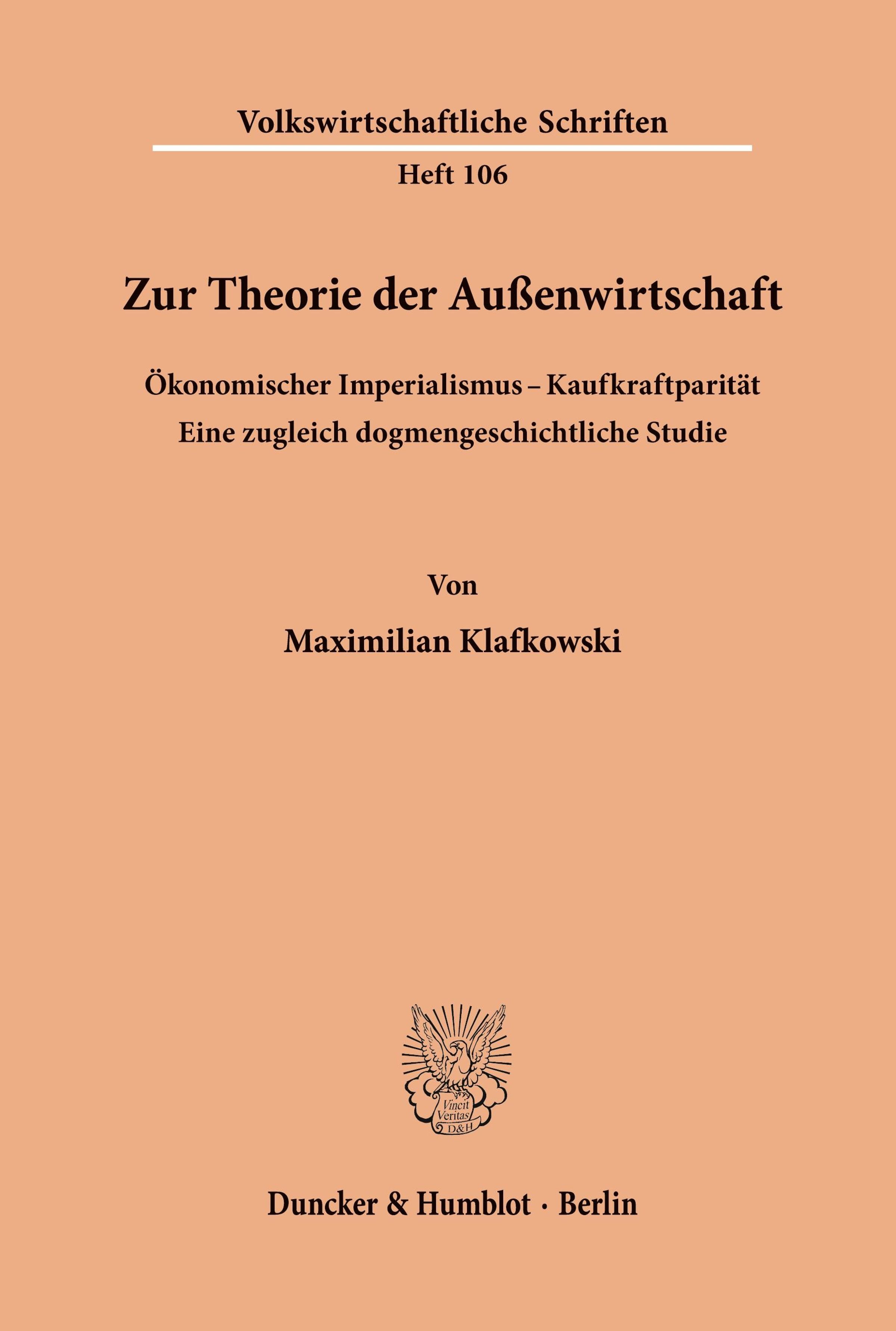 Maximilian Klafkowski: Zur Theorie der Außenwirtschaft. Ökonomischer Imperialismus - Kaufkraftparität., Kartoniert / Broschiert