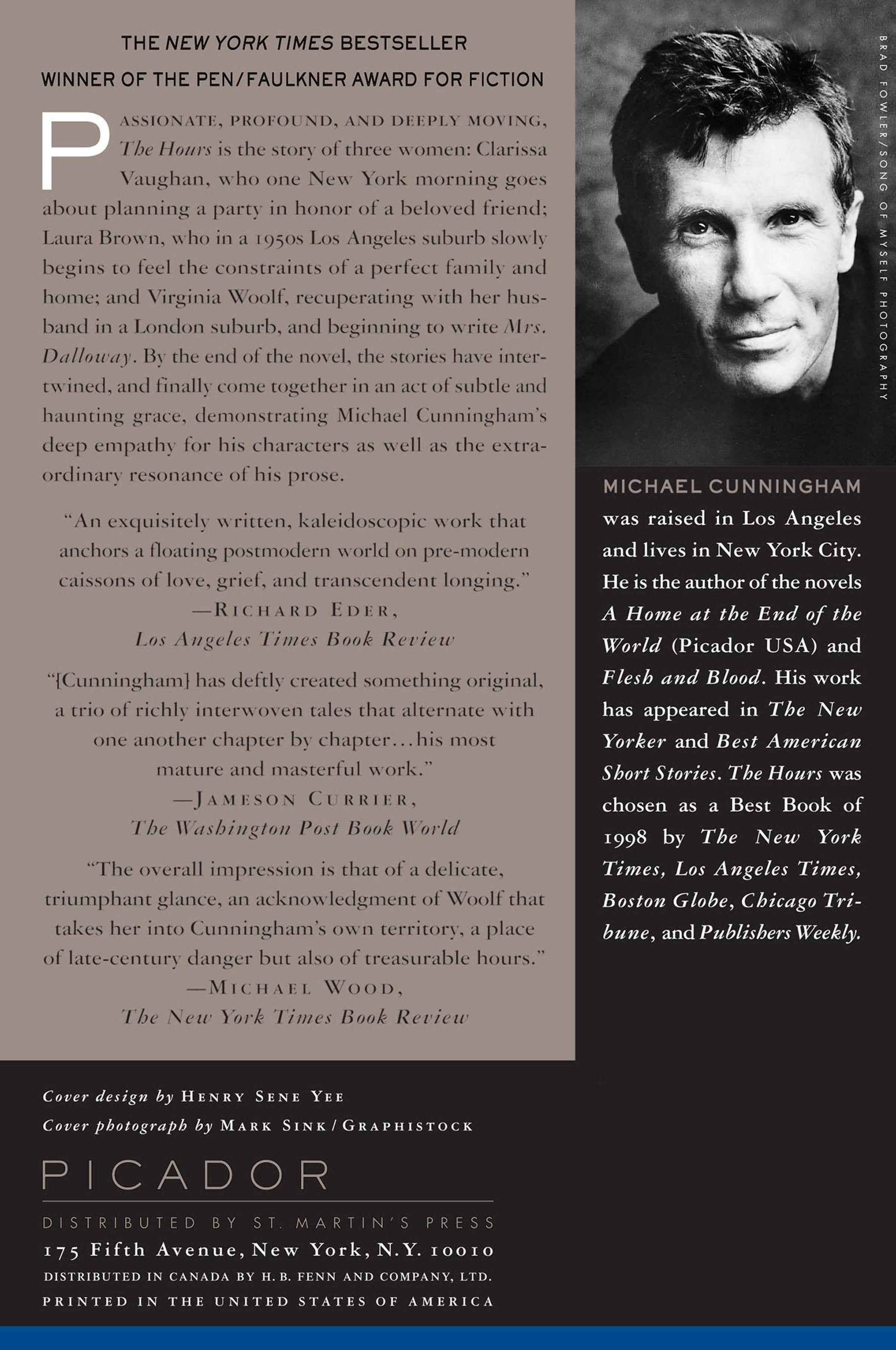 In The Hours , Michael Cunningham, widely praised as one of the most gifted writers of his generation, draws inventively on the life and work of Virginia Woolf to tell the story of a group of contemporary characters struggling with the conflicting claims of love and inheritance, hope and despair. The narrative of Woolf's last days before her suicide early in World War II counterpoints the fictional stories of Samuel, a famous poet whose life has been shadowed by his talented and troubled mother, and his lifelong friend Clarissa, who strives to forge a balanced and rewarding life in spite of the demands of friends, lovers, and family.