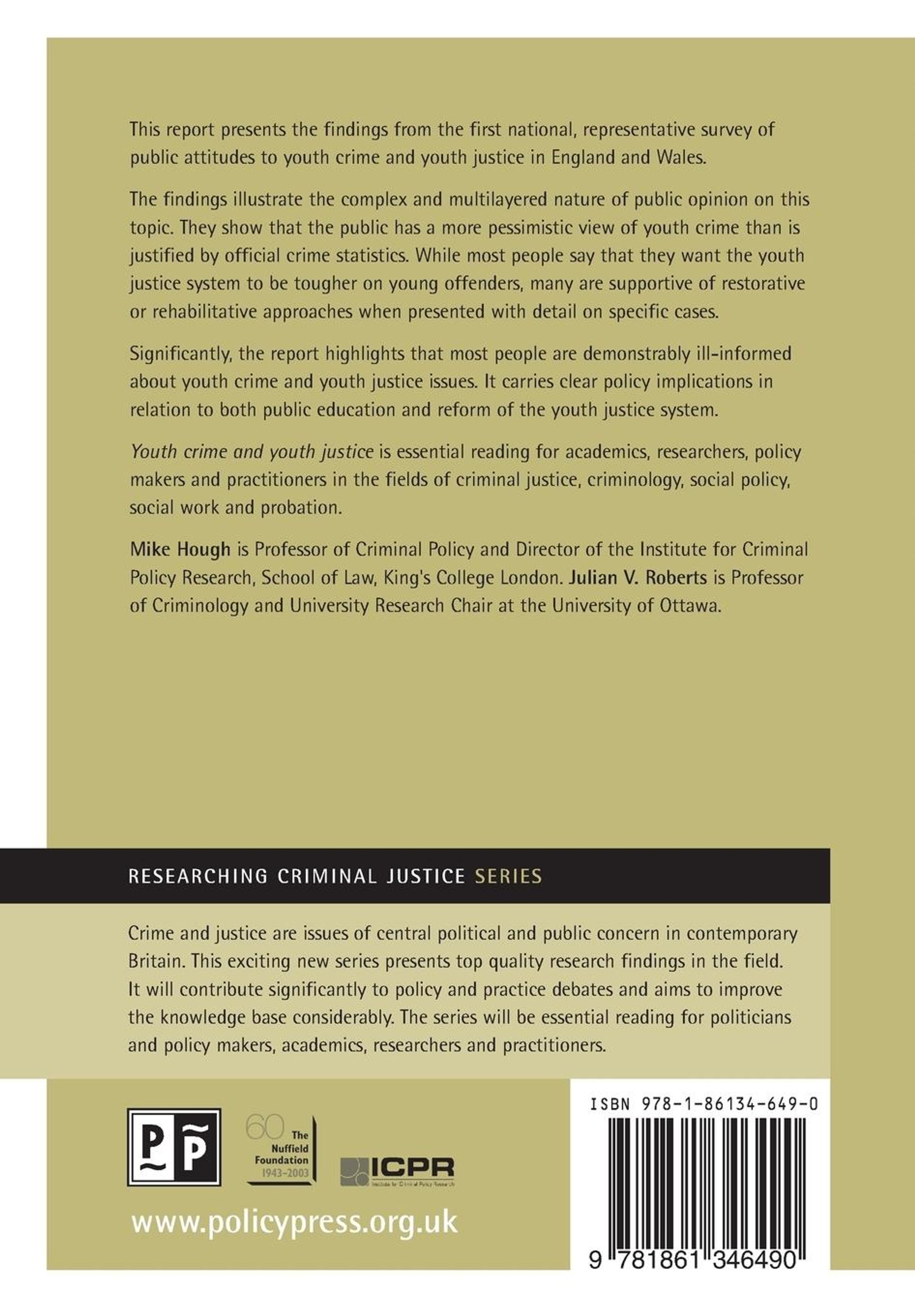 This report presents the findings from the first national, representative survey of public attitudes to youth crime and youth justice in England and Wales. It carries clear policy implications in relation to both public education and reform of the youth justice system.