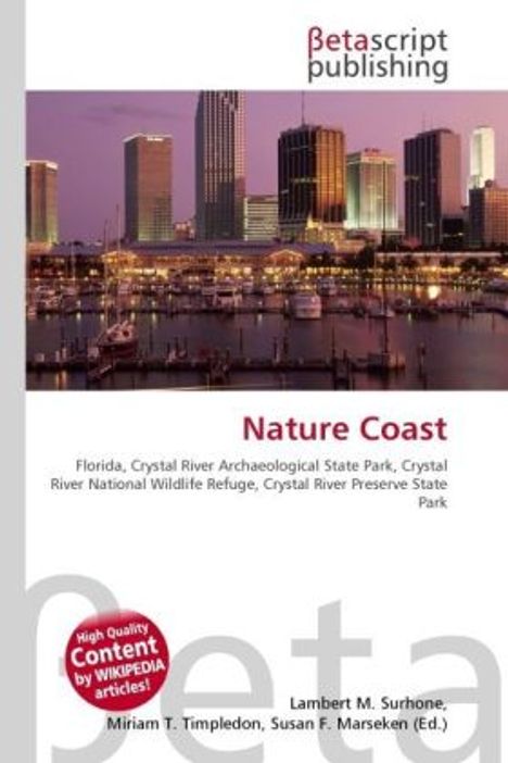 Please note that the content of this book primarily consists of articles available from Wikipedia or other free sources online. The Nature Coast is a region of the U. S. state of Florida. It comprises the inside curve or Big Bend area of the western coast of the state and encompasses Citrus, Dixie, Hernando, Jefferson, Pasco, Levy, Taylor, and Wakulla counties. This region of Florida is culturally partially southern, with the Deep South culture extending to Levy County with the lower southern end (Pasco, Hernando, and sometimes Citrus county) often considered part of the Tampa Bay Metropolian Area. Pasco County is sometimes considered part of the Sun Coast.
