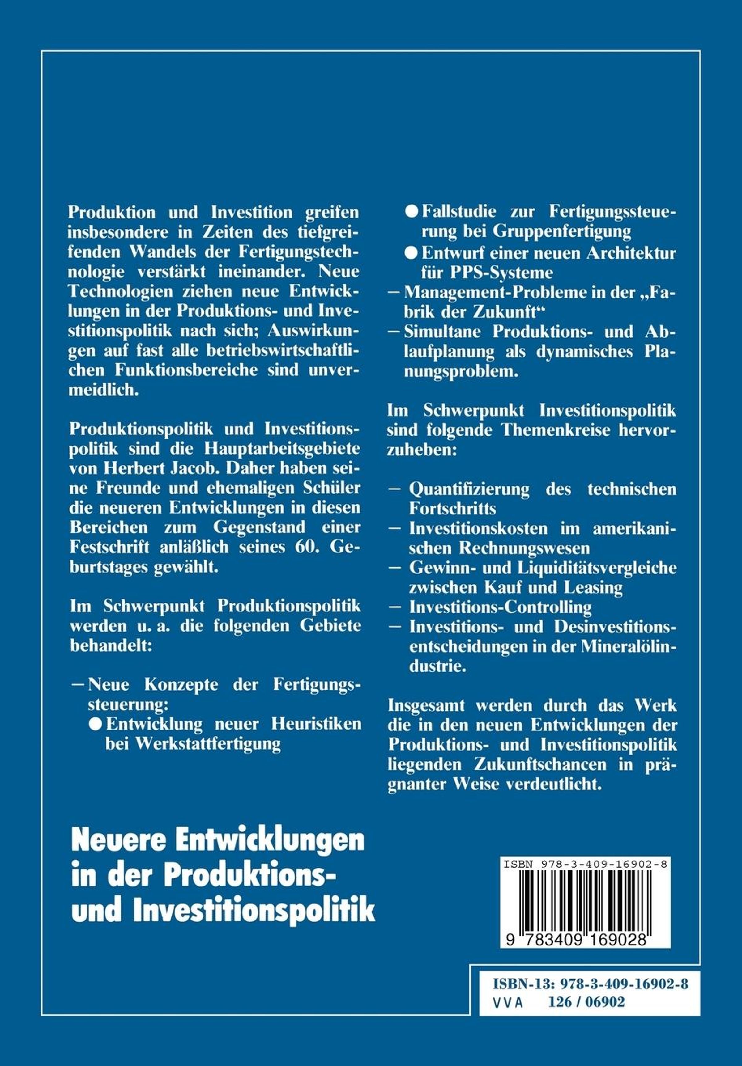 Neuere Entwicklungen in der Produktions- und Investitionspolitik