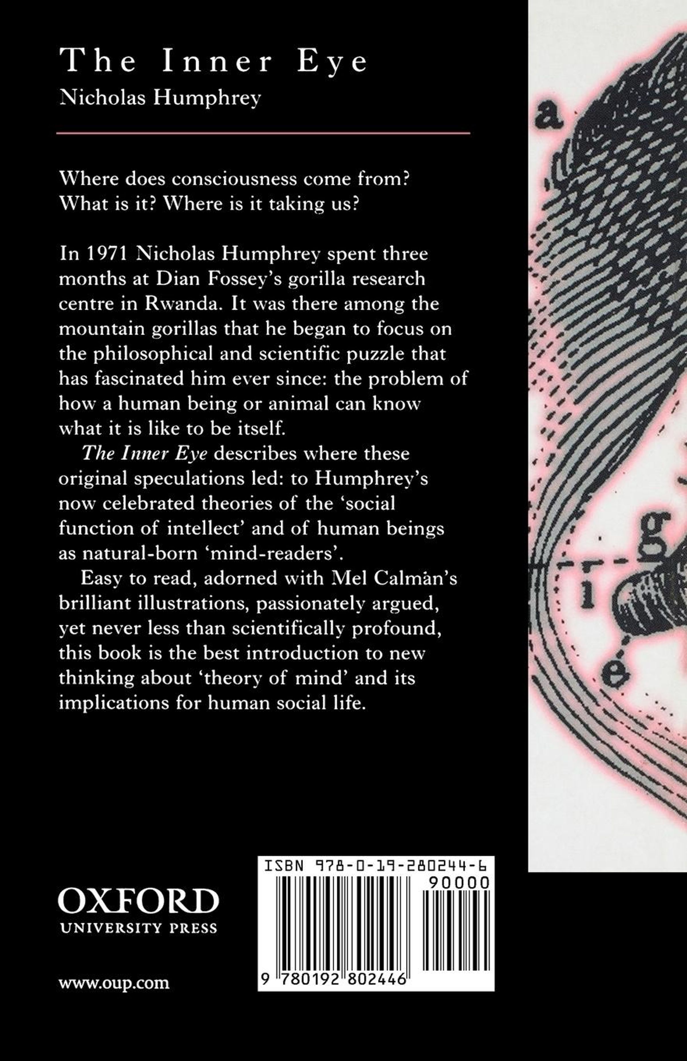In 1971 Nicholas Humphrey spent three months at Dian Fossey's gorilla research centre in Rwanda. It was there, among the mountain gorillas that he began to focus on the philosphical and scientific puzzle that has fascinated him ever since: the problem of how a human being or animal can know what it is like to be itself. The Inner Eye describes where these original speculations led: to Humphrey's now celebrated theories of the 'social function of intellect' and of human beings as natural born 'mind-readers'. Easy to read, adorned with Mel Calman's brilliant illustrations, passionately argued, yet never less than scientifically profound, this book remains the best introduction to new thinking about 'theory of mind' and its implication for human social life.