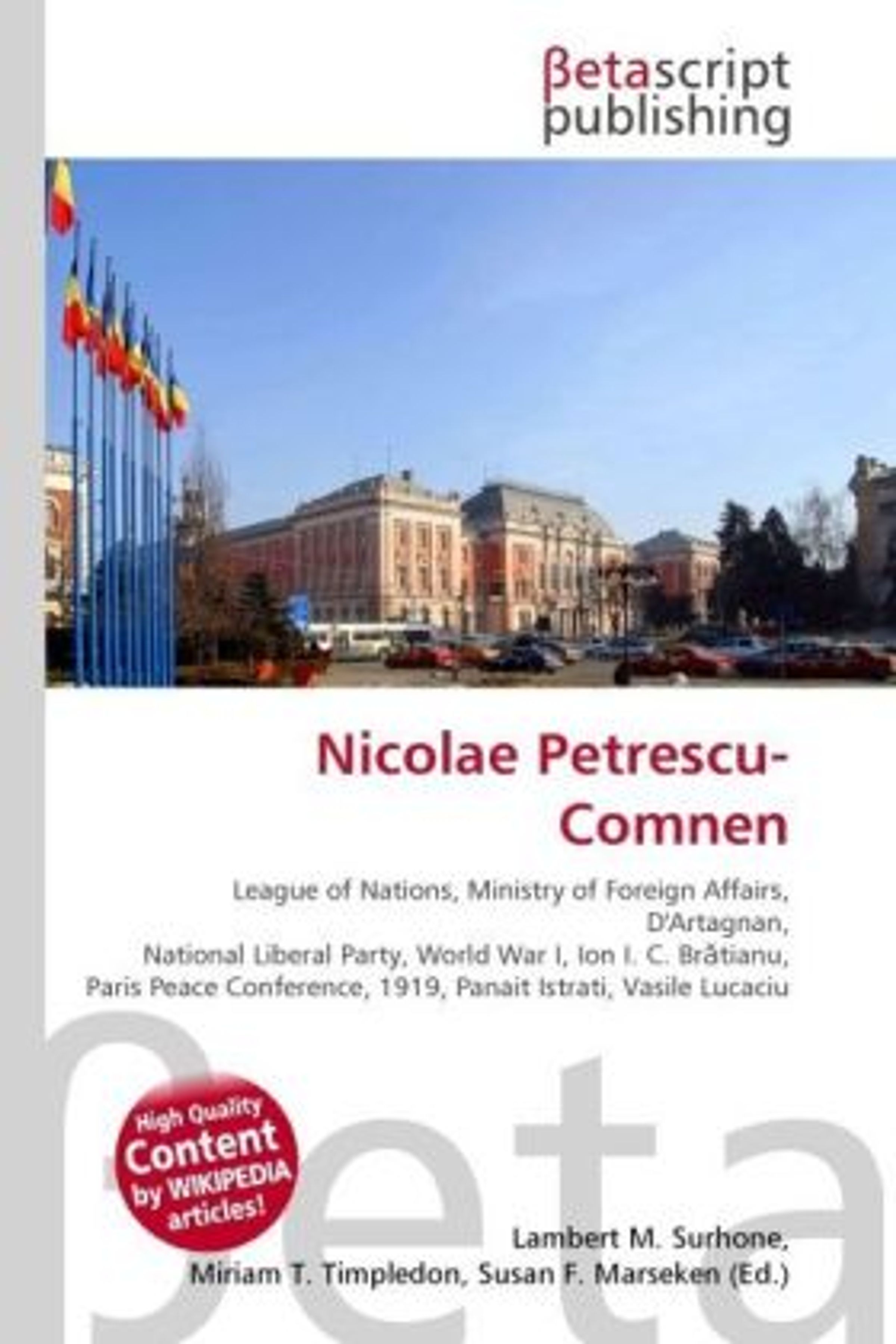 Please note that the content of this book primarily consists of articles available from Wikipedia or other free sources online. Nicolae Petrescu-Comnen (Gallicized as Petrescu-Comnène or Petresco-Comnène, born Nicolae Petrescu; 1881-December 8, 1958) was a Romanian diplomat, politician, and humanitarian, noted for his role in interwar European politics and his support for the League of Nations (to which he was Romania's representative between 1923 and 1927). The author of several books on political history, he served as Minister of Foreign Affairs between March 30, 1938 and January 31, 1939 (in the Octavian Goga and Miron Cristea cabinets). His collaborator and subordinate Noti Constantinide, indicated that Petrescu (whom he called "a highly unusual character") was the son of a magistrate and a teacher, and alleged that he was of Roma descent.