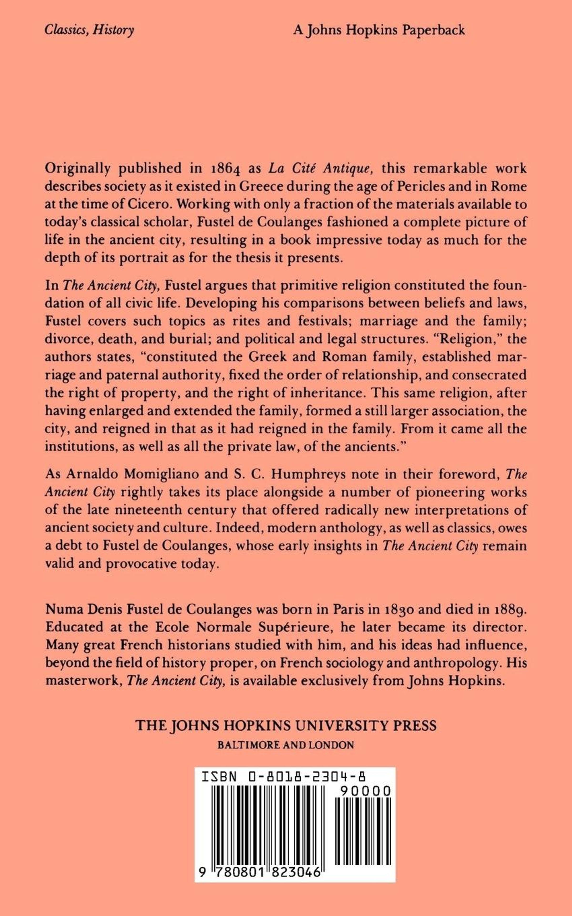 "Ancient or modern, the city is among man's most complex creations and probably the most illustrative of both his best and worst qualities. The Ancient City, originally published in the 1870s, provides a 19th-century French view of Greek and Roman metropolises."'--Washington Post'