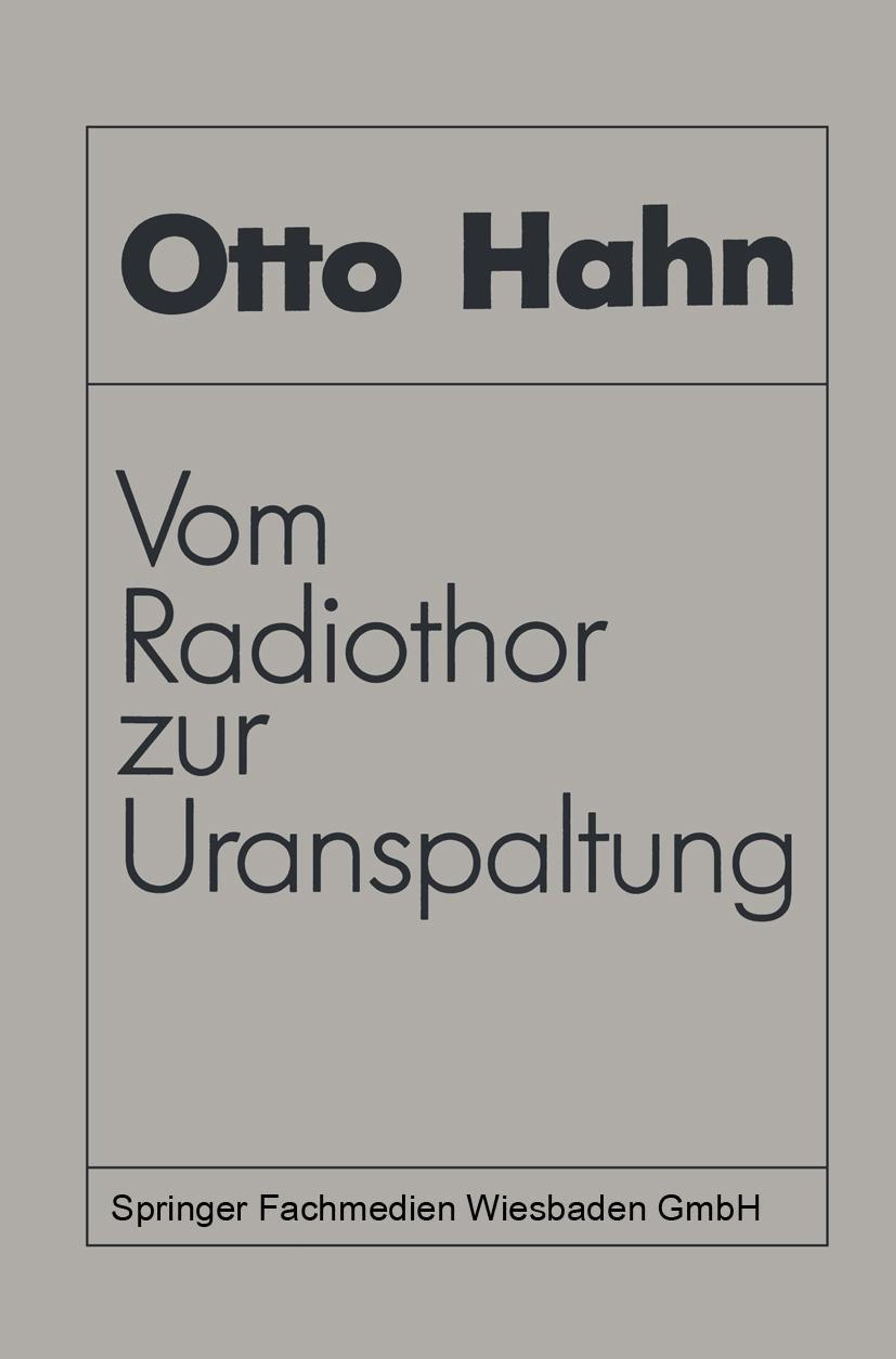 I. Jugend- und Studienjahre.- II. In London bei William Ramsay (Herbst 1904 bis Sommer 1905).- 1. Radiothorium.- 2. Rückblick auf London.- III. In Montreal bei Ernest Rutherford (Herbst 1905 bis Sommer 1906).- 1. Thorium C, Radioactinium.- 2. Rückblick auf Montreal.- IV. Berlin Im Chemischen Institut der Universität (1906 1912).- 1. Mesothorium.- 2. Die Muttersubstanz des Radiums.- 3. Arbeiten über ?-Strahlen mit Lise Meitner.- 4. Radioaktiver Rückstoß.- 5. Vor 50 Jahren Rückblick.- 6. Ausklang aus der Holzwerkstatt Gründung der Kaiser-Wilhelm-Gesellschaft.- V. Wissenschaftliche Kommissionen.- 1. Die Atomgewichtskommissionen.- 2. Die Internationale Radiumstandardkommission.- VI. Im Kaiser-Wilhelm-Institut für Chemie (1913 1944).- A. Arbeiten mit natürlich radioaktiven Elementen und Atomarten.- 1. Aktivität von Rubidium und Kalium. Eine neue Methode zur geologischen Altersbestimmung (Strontiummethode).- 2. Protactinium, die Muttersubstanz des Actiniums mit Lise Meitner.- 3. Uran Z, erstes Beispiel einer Kernisomerie.- 4. ?- und ?-Strahlen mit Lise Meitner.- 5. Das Jahr 1933 und Fritz Haber.- 6. Einige Kapitel aus der angewandten Radiochemie .- a) Fällung und Adsorption kleiner Substanzmengen; normale und anomale Mischkristalle.- b) Über Blei und Helium in Steinsalz und Sylvin.- c) Suche nach inaktivem Radium und nach einem Ekacäsium.- d) Indikatormethode.- 7. Die Emaniermethode.- B. Arbeiten mit künstlich radioaktiven Atomarten.- 1. Bestrahlung des Urans und Thoriums mit Neutronen mit Lise Meitner und Fritz Straßmann.- a) Einleitung.- b) Das Fermische Eka-Rhenium, Element 93.- c) Die zwangsläufige Aufstellung der sogenannten Trans-Uran-Reihen.- d) Ein künstliches Uran-Isotop von 23 min Halbwertszeit.- 2. Nicht erkannte Spaltung des Thoriums.- 3. Lise Meitner, ihr Fortgang aus Berlin.- 4. Fritz Straßmann.- 5. Die sogenannten Radium -Isotope.- 6. Die Radium -Isotope war en Barium.- 7. Indikatoren-Beweise für die Zerspaltung von Uran und Thorium.- 8. Entwirrung der bei der Zerspaltung auftretenden aktiven Atomarten.- a) Nachweis kurzlebiger Spaltprodukte durch die Emanierfähigkeit von Uran- und Thoriumverbindungen.- b) Direkte Messung der bei der Spaltung auftretenden Edelgase.- c) Getrennte Abscheidung der bei der Uranspaltung entstehenden Krypton- und Xenon-Isotope.- d) Über eine bei der Uranspaltung auftretende Kern-Isomerie.- 9. Welchen Elementen entsprachen unsere Trans-Urane?.- 10. Abscheidung des Elements 93 Neptunium.- 11. Radiometrische Adsorptionsanalyse.- 12. Schluß.- Rückblick.- Anhang I.- Nachweis der Entstehung aktiver Bariumisotope aus Uran und Thorium durch Neutronenbestrahlung; Nachweis weiterer aktiver Bruchstücke bei der Uranspaltung. Von Otto Hahn und Fritz Straßmann.- Anhang II.- Einiges über die experimentelle Entwirrung der bei der Spaltung des Urans auftretenden Elemente und Atomarten. Nach Versuchen von Otto Hahn, Fritz Straßmann und Hans Götte.- Anhang III.- Die chemische Abscheidung der bei der Spaltung des Urans entstehenden Elemente und Atomarten (Allgemeiner Teil). Von Otto Hahn und Fritz Straßmann.- Errata.