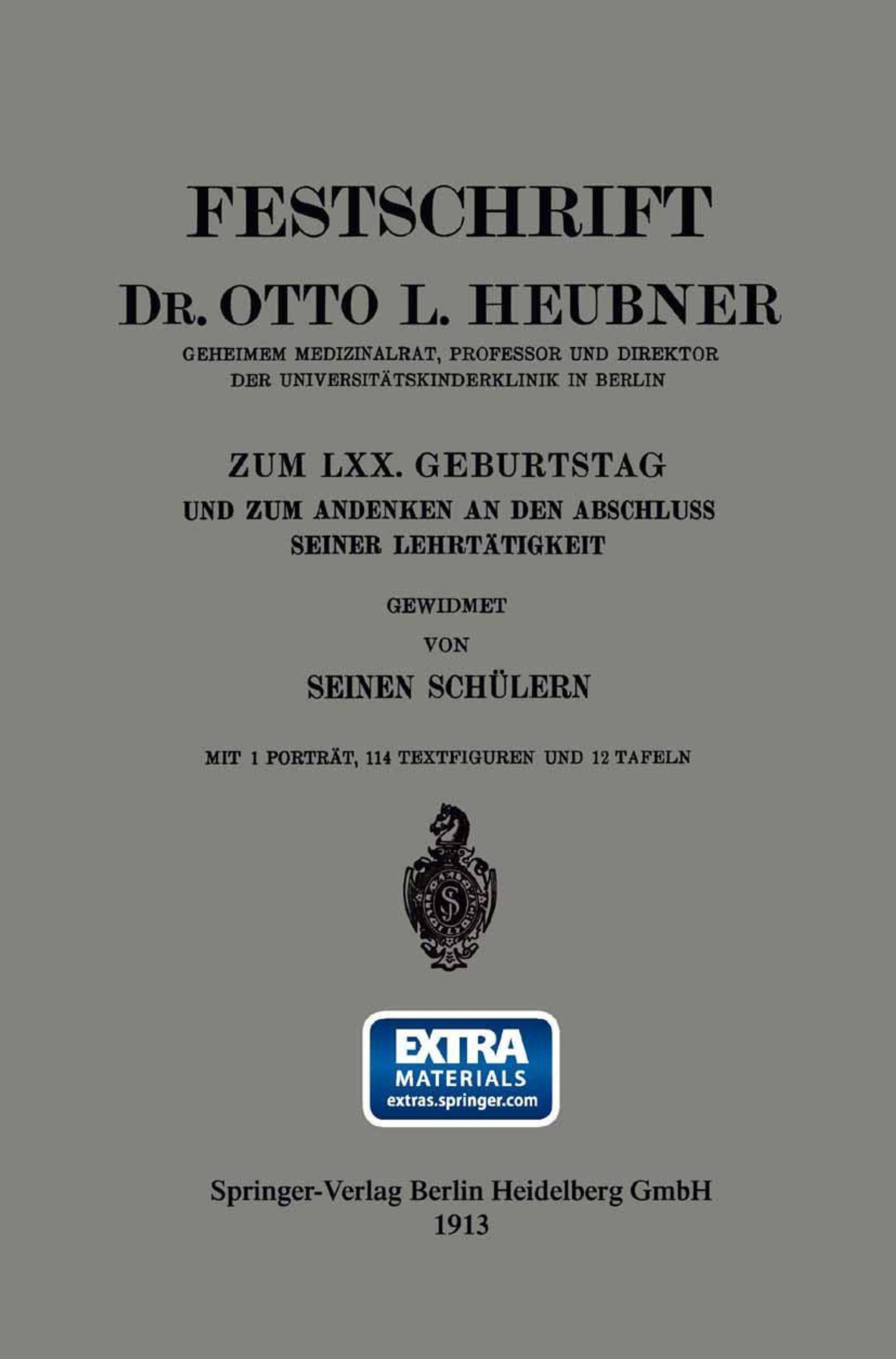 Festschrift Dr. Otto L. Heubner, Geheimem Medizinalrat, Professor und Direktor der Universitätskinderklinik in Berlin, zum LXX. Geburtstag und zum Andenken an den Abschluss Seiner Lehrtätigkeit