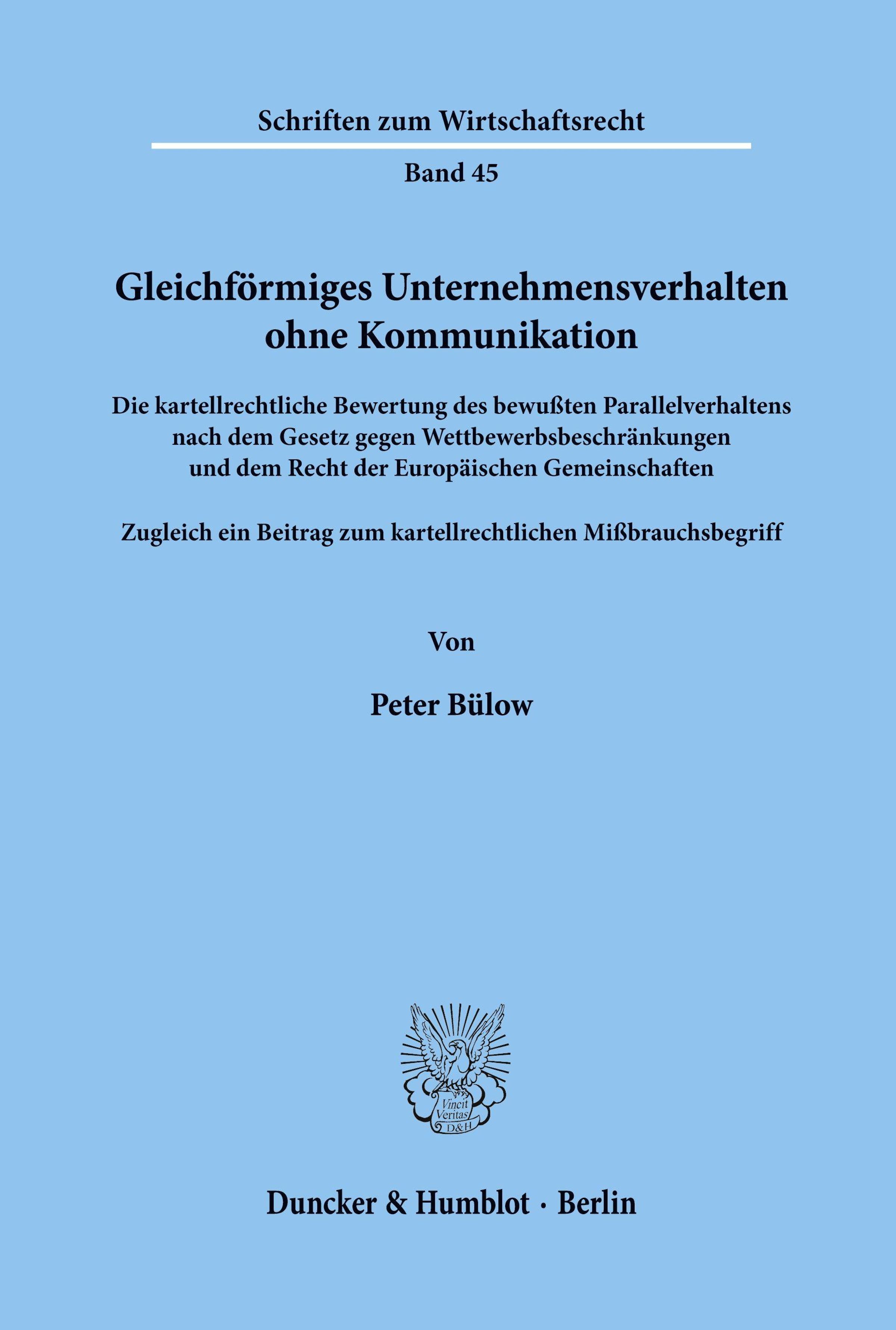 - Die kartellrechtliche Bewertung des bewußten Parallelverhaltens nach dem Gesetz gegen Wettbewerbsbeschränkungen und dem Recht der Europäischen Gemeinschaften. Zugleich ein Beitrag zum kartellrechtlichen Mißbrauchsbegriff.
