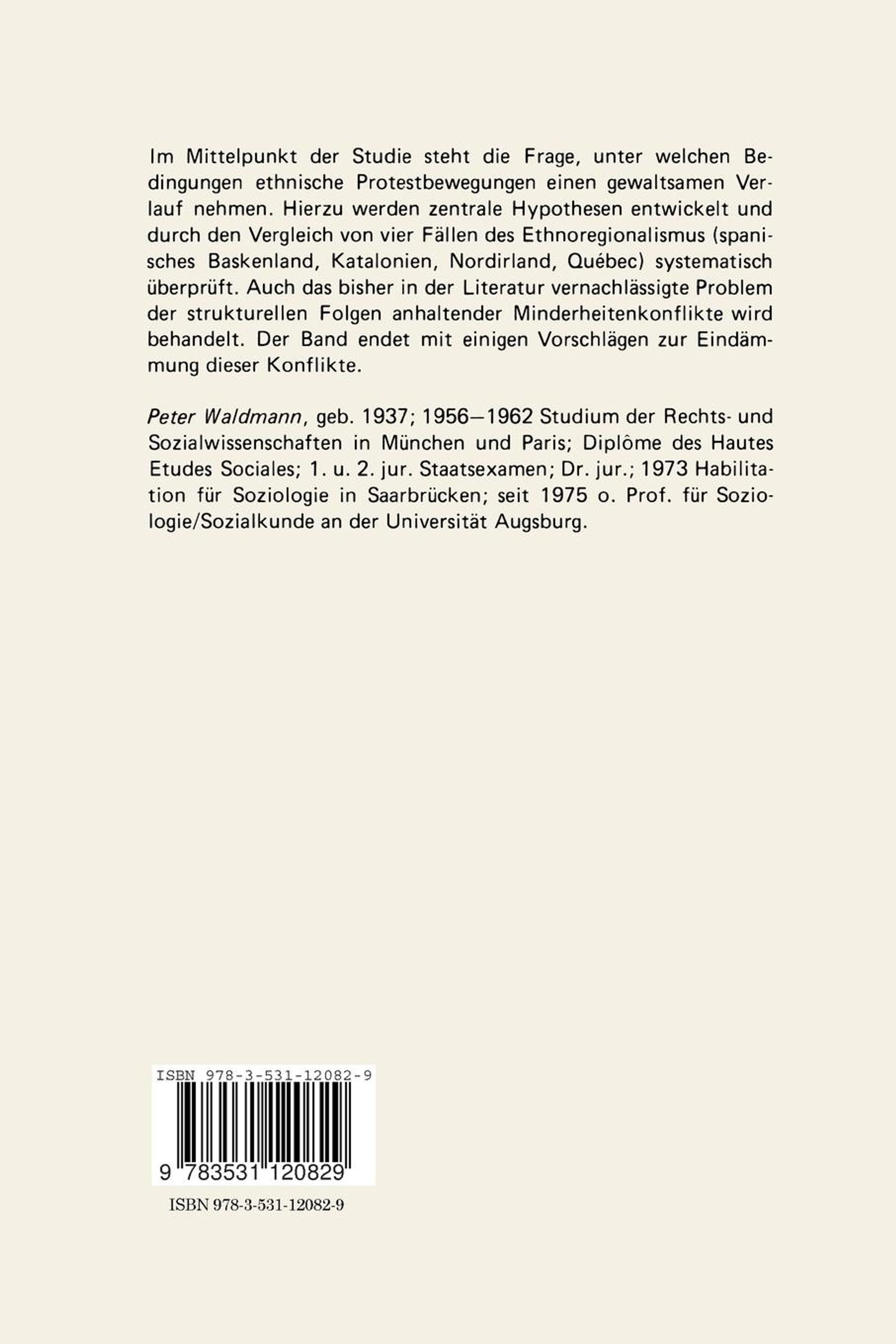 1. Einführung: Zur vergleichenden Analyse gewaltsamer ethnischer Minderheiten.- 1.1 Fragestellung.- 1.2. Begriffe.- 1.3. Methode und Fallauswahl.- 1.4. Hypothesen.- 1.5. Anmerkungen zum Literaturstand.- 2. Mittelschichtprotest als Konfliktauftakt.- 2.1. Die nordirische Bürgerrechtsbewegung.- 2.2. Die stille Revolution in Quebec.- 2.3. Wiedererwachen des Regionalismus im Spanien Francos.- 2.4. Vergleichsaspekte.- 3. Die separatistischen Bewegungen.- 3.1. Die nordirischen Ultraloyalisten.- 3.2. IRA und Sinn Fein.- 3.3. ETA und Herri Batasuna.- 3.4. Parti Québécois und FLQ.- 3.5. Vergleichsaspekte.- 4. Das Territorialprinzip.- 4.1. Räumliche Konfliktmuster.- 4.2. Verteidigungszonen, Schonräume, Fluchttore.- 4.3. Angst vor Enteignung.- 4.4. Minderheit und Raumdimension: Zusammenfassung.- 5. Soziale Ungleichheit und ethnische Mobilisierung.- 5.1. Auflehnung gegen sozioökonomische Benachteiligung?.- 5.2. Der geschichtliche Kontext.- 5.3. Klassenhegemonie innerhalb der nationalistischen Bewegung.- 5.4. Sozialstruktur und ethnischer Konflikt: Zusammenfassung.- 6. Vom staatlichen Legitimitätsverlust zum nationalistischen Gegenmythos.- 6.1. Legitimitätsdefizite.- 6.2. Loyalitätsvorbehalte.- 6.3. Sakralisierung des Konflikts.- 6.4. Staatliche und aufetändische Legitimation im Widerstreit: Zusammenfassung.- 7. Die Folgen des Konflikts.- 7.1. Methodische Vorbemerkung.- 7.2. Humankosten (insbesondere bei Konfliktzuspitzungen).- 7.3. Materieller Schaden und wirtschaftliche Konsequenzen.- 7.4. Machtverschiebungen.- 7.5. Moralischer Niedergang?.- 7.6. Die radikale Gemeinschaft.- 8. Postskript zur Gewalteindämmung.- 9. Anhang.- 1. Verzeichnis der Abkürzungen.- 2. Verzeichnis der Tabellen und Abbildungen.- 3. Zeittafeln zur Geschichte der Minderheiten.- 4. Kurzlebensläufe von Mitgliedern der Gewaltorganisationen.- 5. Literaturverzeichnis.- 6. Karten der Minderheitenregionen.
