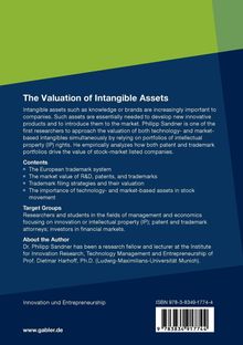 Companies need intangible assets such as knowledge and brands to develop and to sell new products. Although intangibles become increasingly important, formal reporting procedures to reliably assess their monetary value do not exist. In his dissertation, Philipp Sandner aims at examining portfolios of intellectual property (IP) rights to assess the market valuation of companies intangible assets. Specifically, patents and trademarks are used to approach technology-based and market-based assets, resp- tively. He applies econometric methods to a unique dataset which he assembled specifically for the purpose of this thesis. The thesis consists of four main chapters. First, Philipp Sandner presents in some detail the European trademark system. Research in business administration and e- nomics has rarely relied on trademark data, and the complexity of the institutions is presumably one reason for the current dearth of studies. The first chapter in this study creates a sound foundation for the subsequent chapters. It is also helpful to other researchers who wish to understand the trademark system. The next chapter analyzes the contribution of R&D, patents and trademarks to companies market value. Philipp Sandner is one of the first authors to quantify the impact of different types of intan- bles. In another chapter he scrutinizes trademark portfolios in-depth and explores different filing strategies employed by companies. In the final chapter, he analyzes patterns of stock movement and traces them back to the effect of technology- and market-based assets.