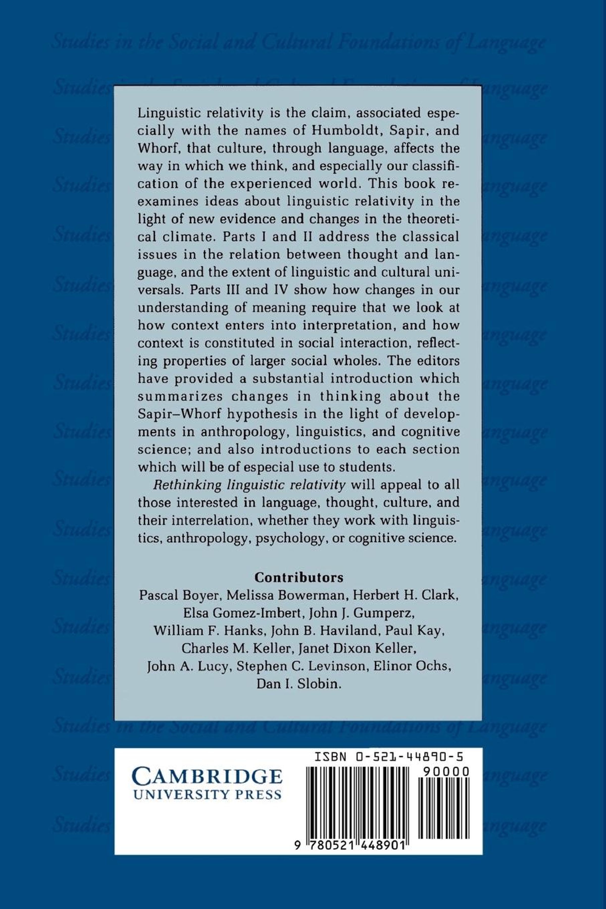 This book reexamines ideas about linguistic relativity in the light of new evidence and changes in theoretical climate.