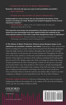 Undergirding Burgess's narrative is the argument that while technology has historically defined the nature of music production, the drive toward greater control over the process, end result, and overall artistry came from producers. In keeping with this unique argument, The History of Music Production incorporates clear yet in-depth discussion of the developmental engagement of technology, business, and art with music production. Burgess builds this history of music production upon the strongest possible foundation: the key transitions, trends, people, and innovations that have been most important in the course of its development over the past 136 years. The result is a deeply knowledgeable book that sketches a critical path in the evolution of music production, and describes and analyzes the impact recording, playback, and disseminative technologies have had on recorded music and music production. Central to the field and a key reference book for students and scholars alike, it will stand as a companion volume to Burgess's noted, multi-edition book The Art of Music Production.