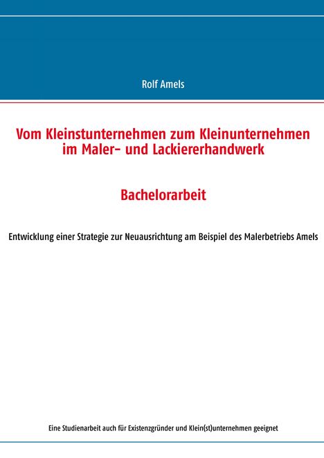 Rolf Amels: Vom Kleinstunternehmen zum Kleinunternehmen im Maler- und Lackiererhandwerk, Kartoniert / Broschiert