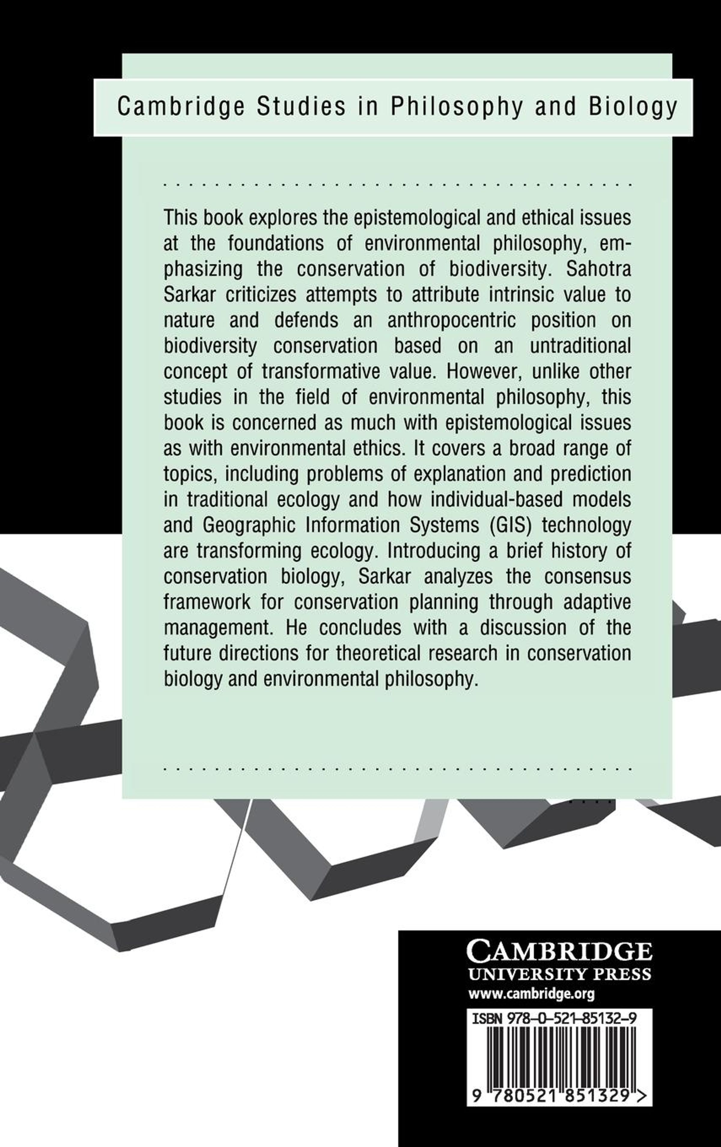 This book explores the epistemological and ethical issues at the foundations of environmental philosophy, emphasising the conservation of biodiversity. Sahota Sarkar criticises attempts to attribute intrinsic value to nature and defends an anthropocentric position on biodiversity conservation based on an untraditional concept of transformative value. Unlike other studies in the field of environmental philosophy, this book is as much concerned with epistemological issues as with environmental ethics. It covers a broad range of topics, including problems of explanation and prediction in traditional ecology and how individual-based models and Geographic Information Systems (GIS) technology is transforming ecology. Introducing a brief history of conservation biology, Sarkar analyses the consensus framework for conservation planning through adaptive management. He concludes with a discussion of directions for theoretical research in conservation biology and environmental philosophy.