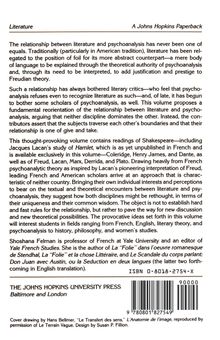 The provocative ideas set forth in this volume will interest students in fields ranging from French, English, literary theory, and psychoanalysis to history, philosophy, and women's studies.