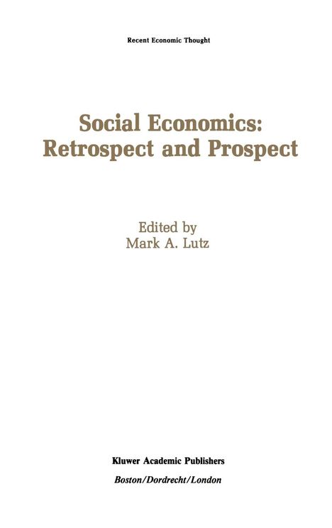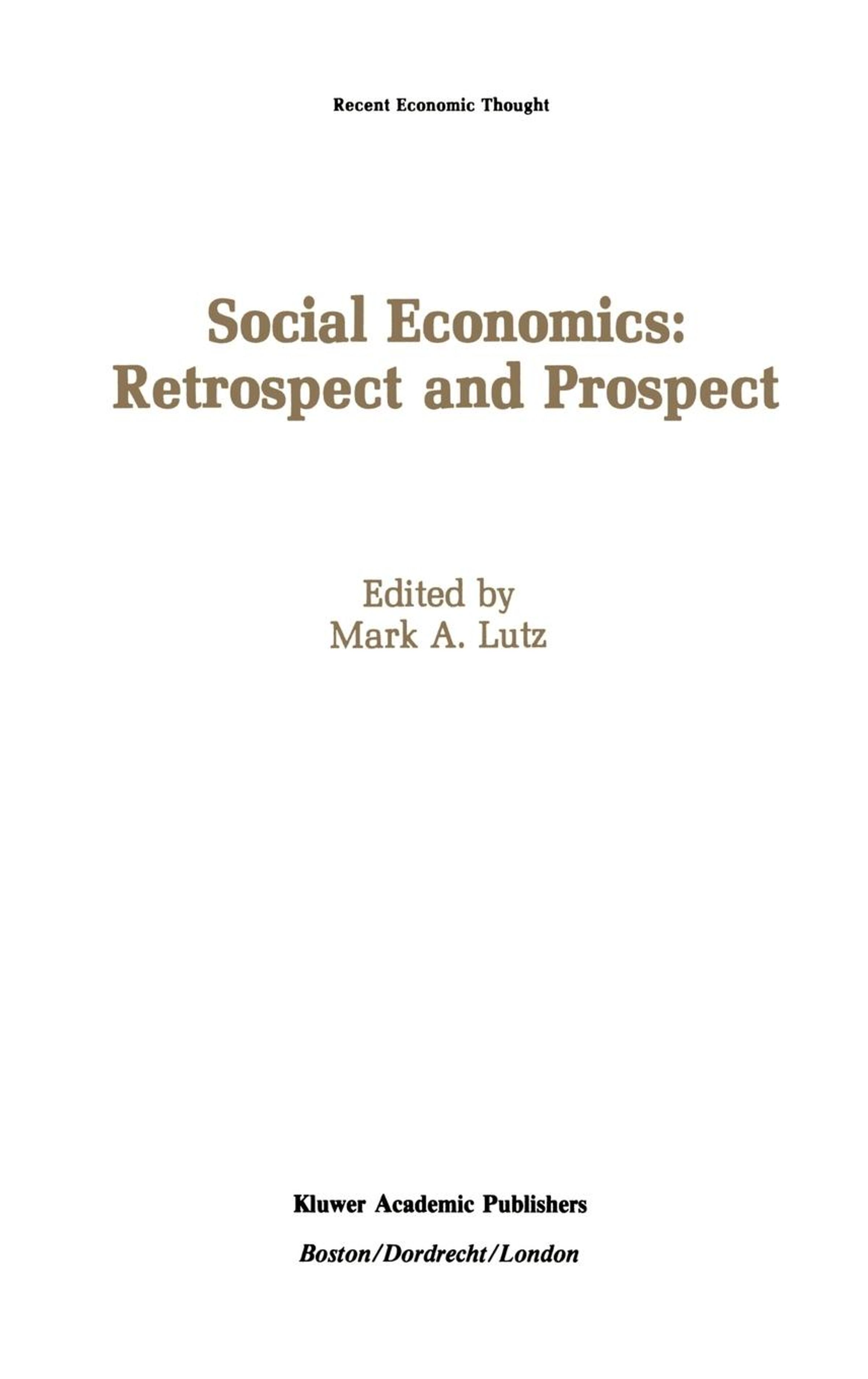 Weitere Ausgaben von Social Economics: Retrospect and Prospect |