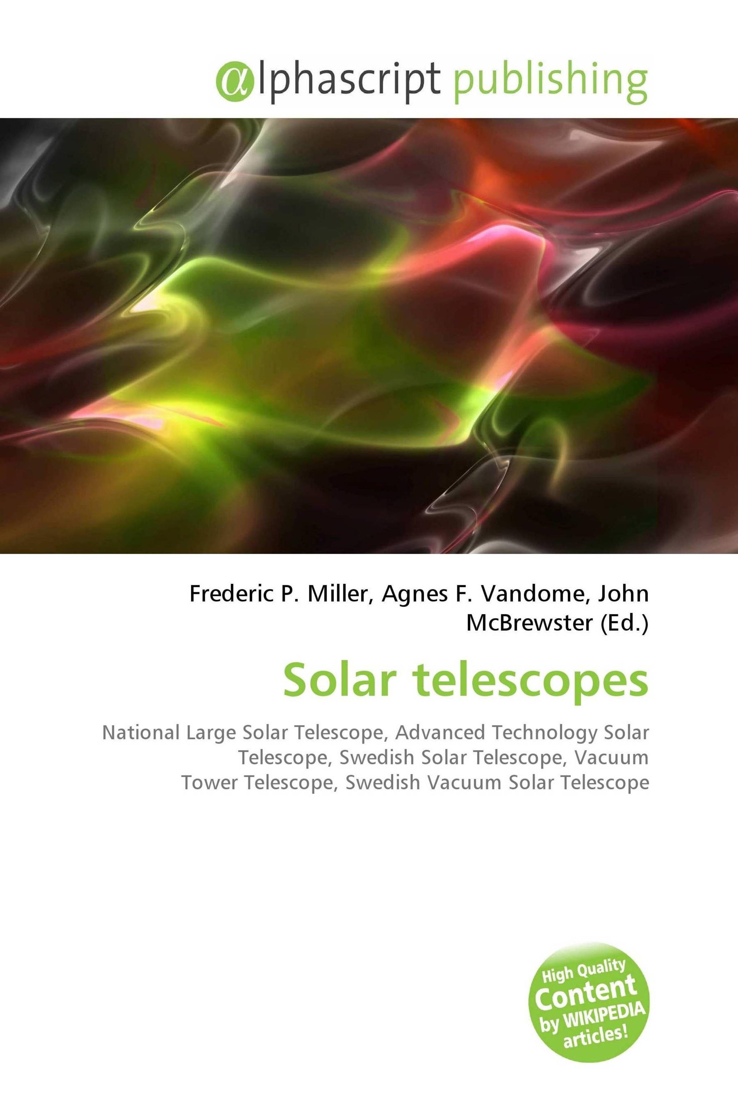 Please note that the content of this book primarily consists of articles available from Wikipedia or other free sources online. Ground-based professional observatory telescopes at optical wavelengths in a chronological list. Solar telescopes often have multiple focal lengths, and use various combination of mirrors (such as coelostats), lenses, and tubes for instruments including spectrographs, cameras, or coronographs. There are many types of instruments that have been designed to observe Earth's Sun, but in the 20 century Solar towers were common.