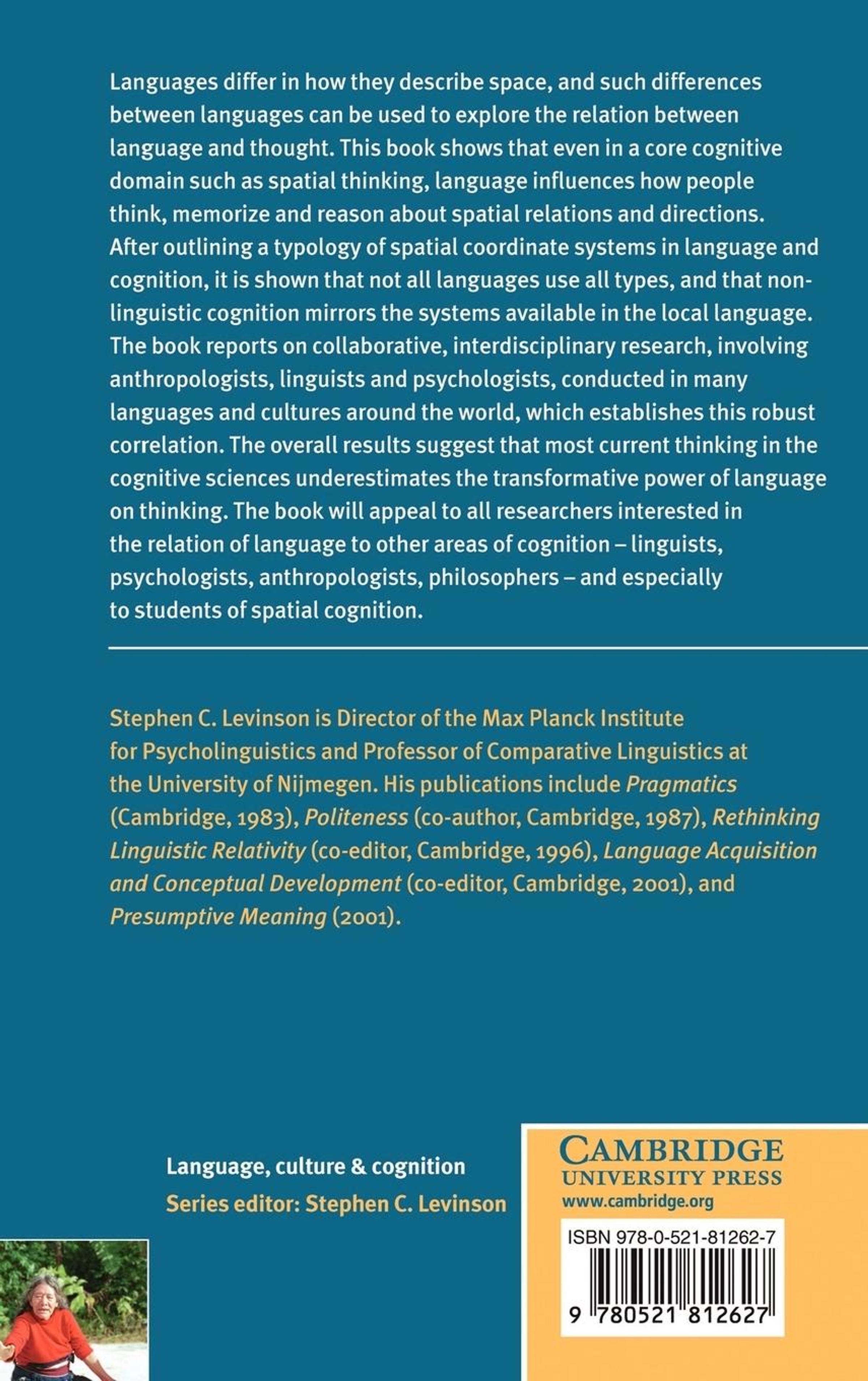 Languages differ in how they describe space, and such differences between languages can be used to explore the relation between language and thought. This 2003 book shows that even in a core cognitive domain like spatial thinking, language influences how people think, memorize and reason about spatial relations and directions. After outlining a typology of spatial coordinate systems in language and cognition, it is shown that not all languages use all types, and that non-linguistic cognition mirrors the systems available in the local language. The book reports on collaborative, interdisciplinary research, involving anthropologists, linguists and psychologists, conducted in many languages and cultures around the world, which establishes this robust correlation. The overall results suggest that thinking in the cognitive sciences underestimates the transformative power of language on thinking. The book will be of interest to linguists, psychologists, anthropologists and philosophers, and especially to students of spatial cognition.