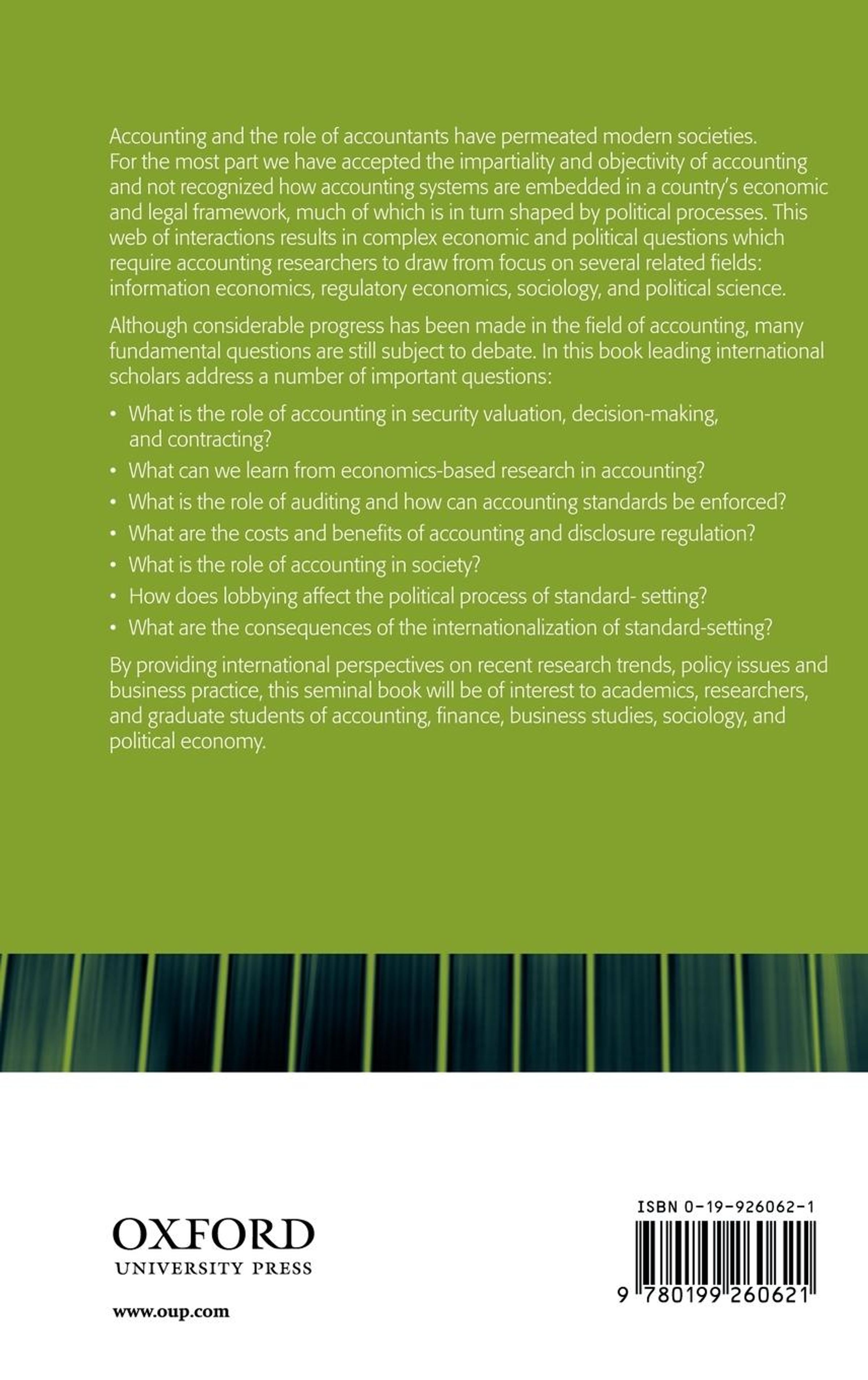 Accounting and the role of Accountants has permeated the modern societies. For the most part we have accepted the impartiality and objectivity of accounting and not recognized how accounting systems are embedded in a country's economic and legal framework, much of which is in turn shaped by political processes. This web of interactions results in complex economic and political questions which require accounting researchers to focus on several related trends: information economics, regulatory economics, sociology, and political science.