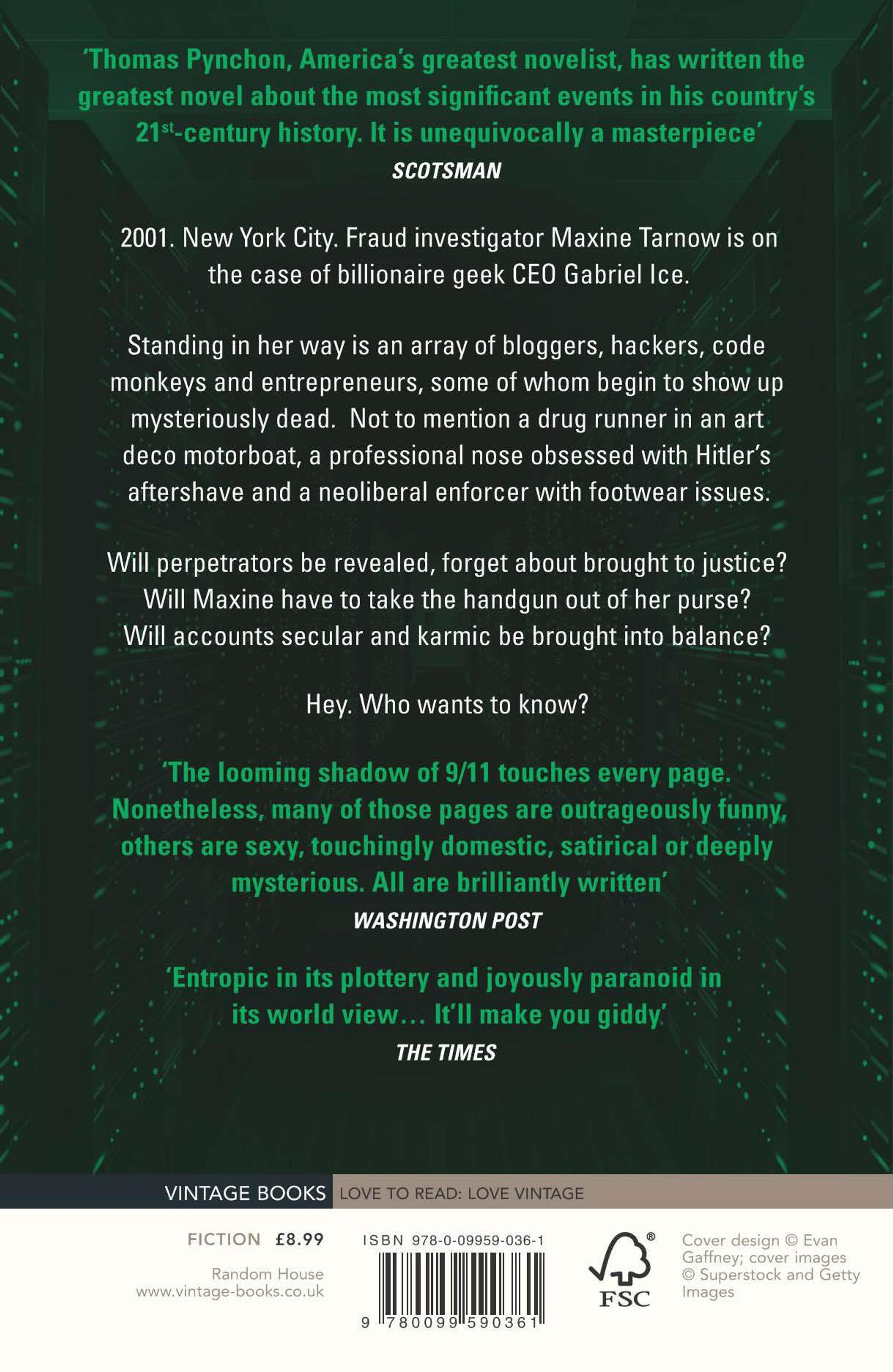 "Thomas Pynchon, America s greatest novelist, has written the greatest novel about the most significant events in his country s 21st century history. It is unequivocally a masterpiece." Stuart Kelly Scotsman